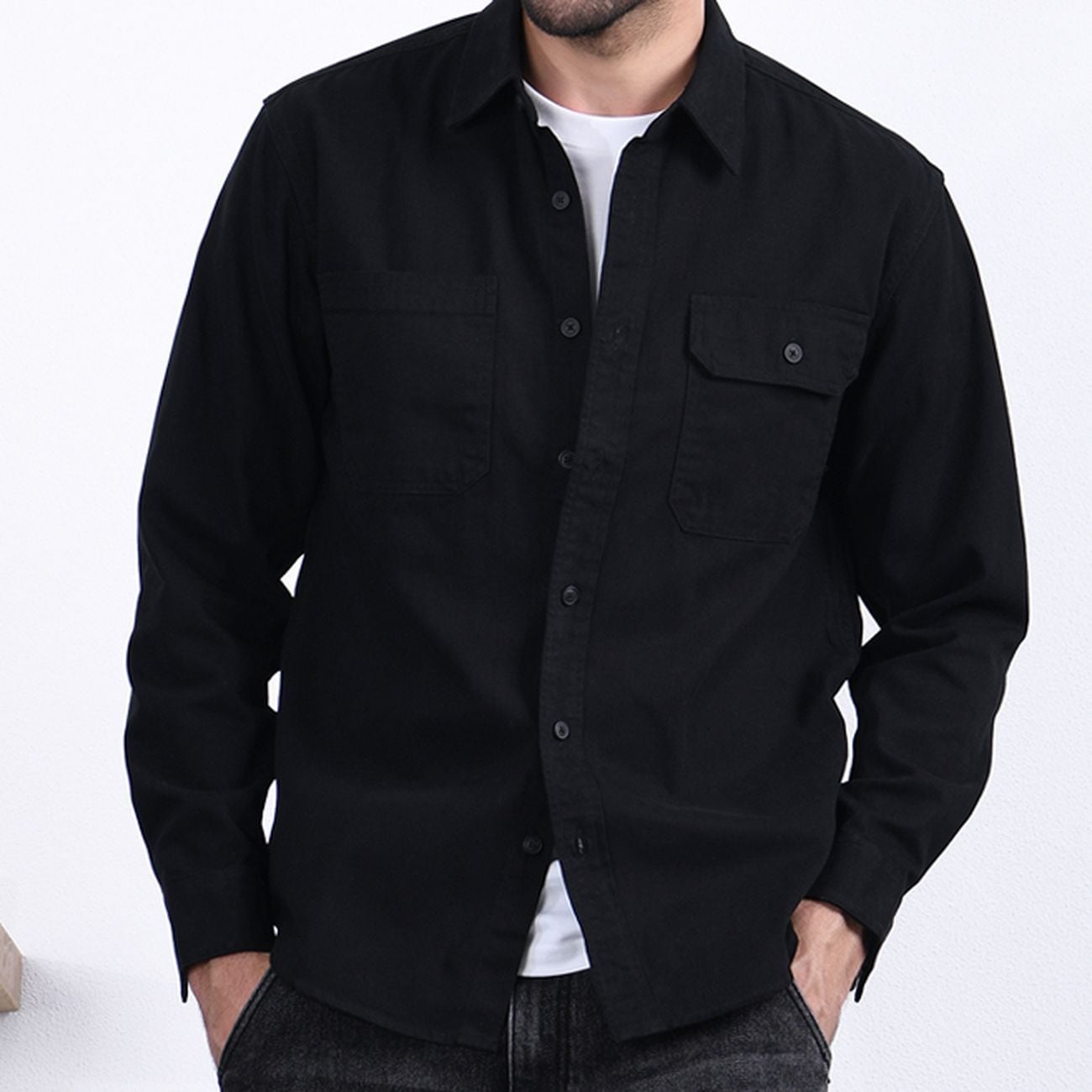 綿100% 長袖 パッチポケット シャツ 4color KA1160