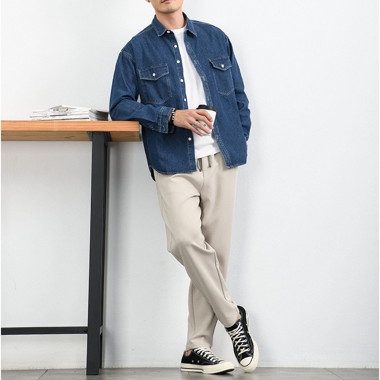カジュアルなデニムシャツは、着回しやすさが魅力です。シンプルなデザインなので、様々なボトムスやアウターと合わせやすく、シーンを選ばず着用できます。一枚持っていると便利なアイテムです。
