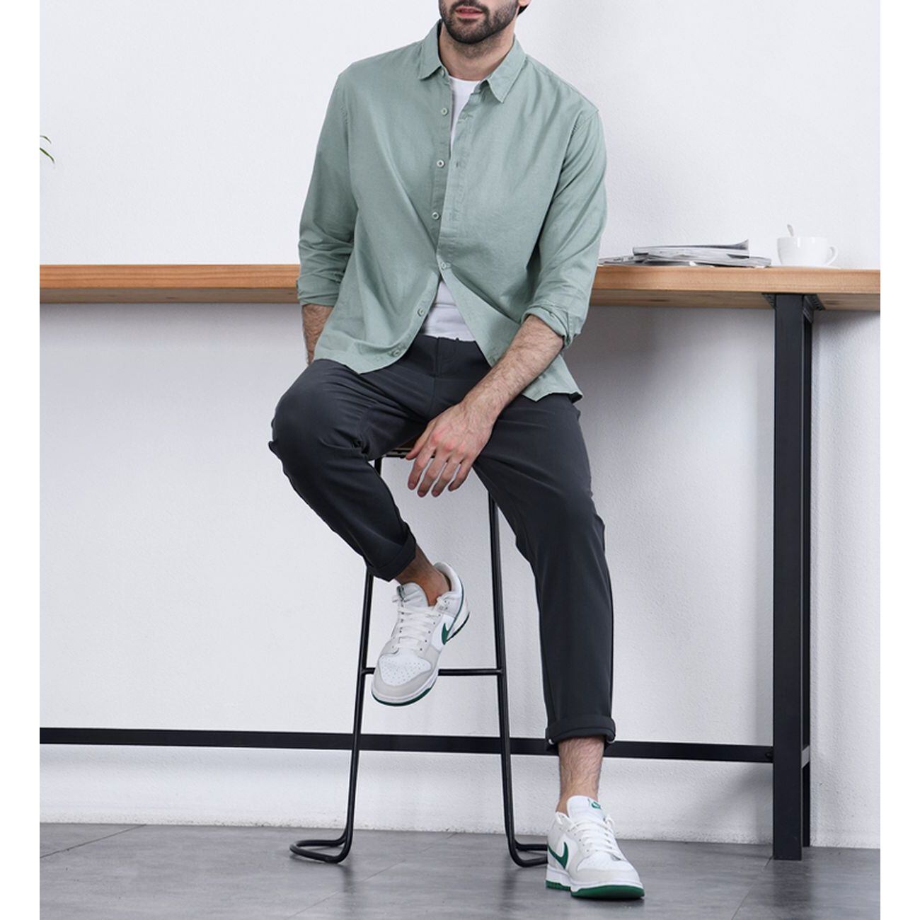 リネンコットン 長袖シャツ ストレートシルエット 5color KA1180