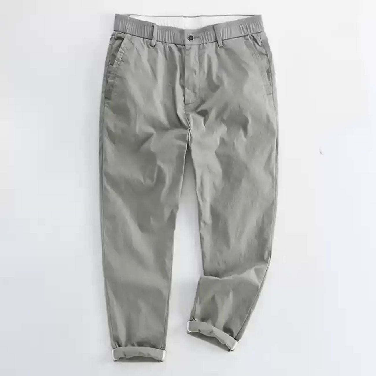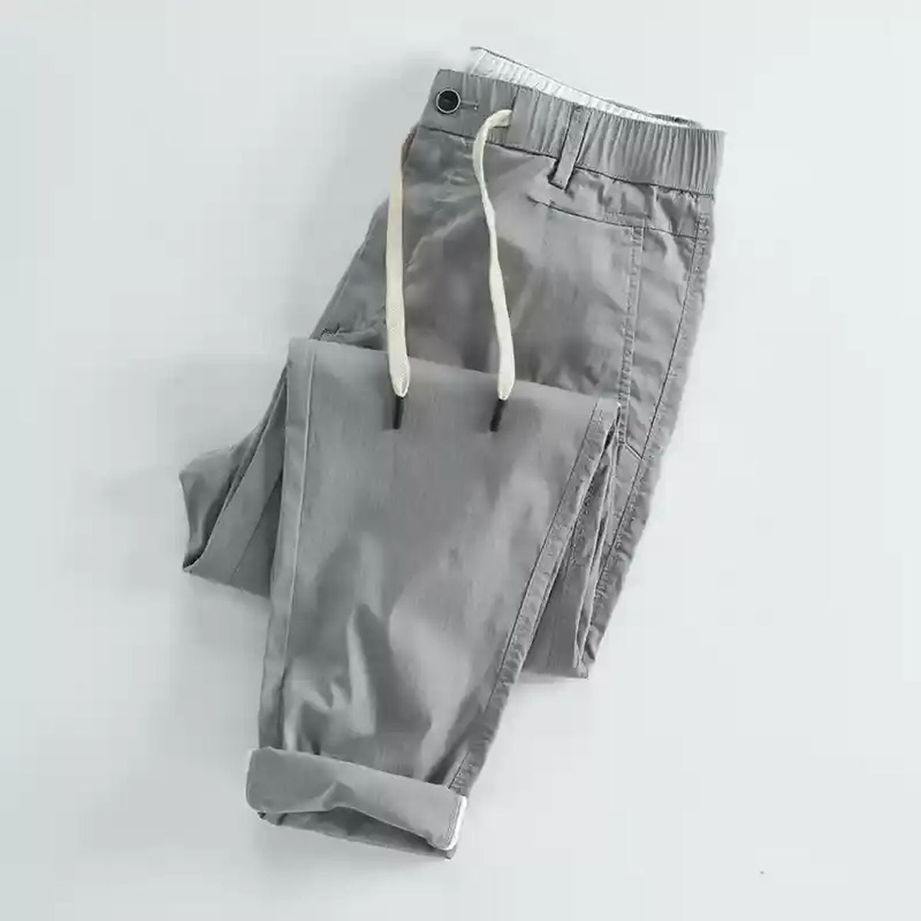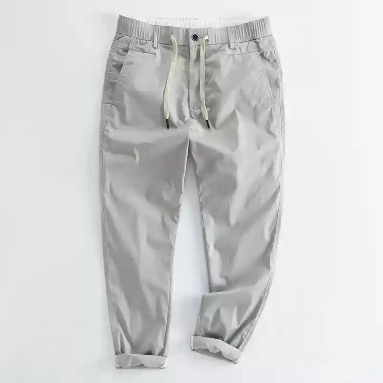 ウエストゴム仕様でラクに履けるメンズストレートパンツ。シンプルなデザインで、カジュアルからキレイめまで幅広いスタイルに対応。動きやすく、普段使いはもちろんリラックスシーンにも最適です。