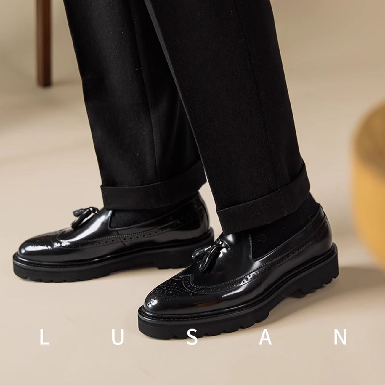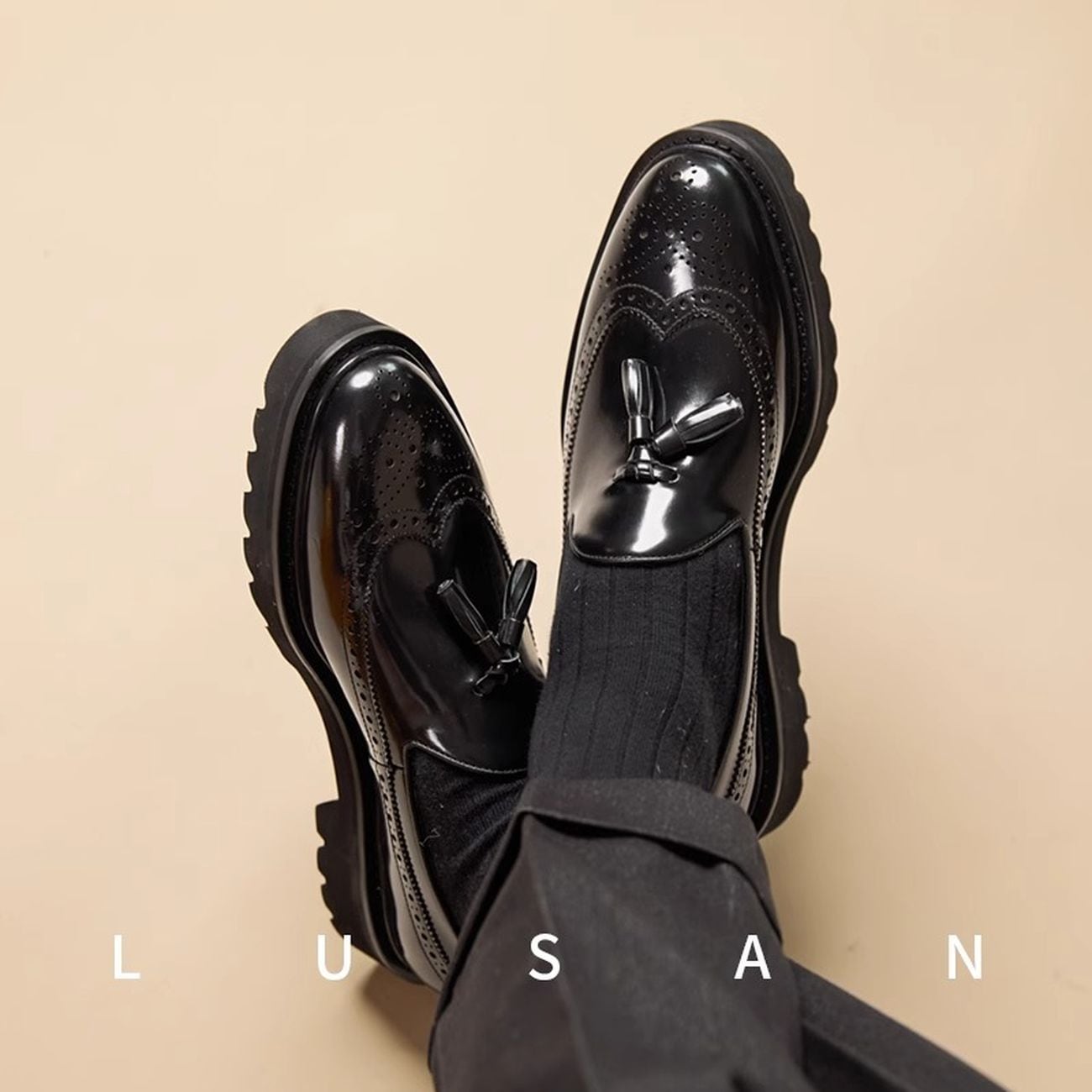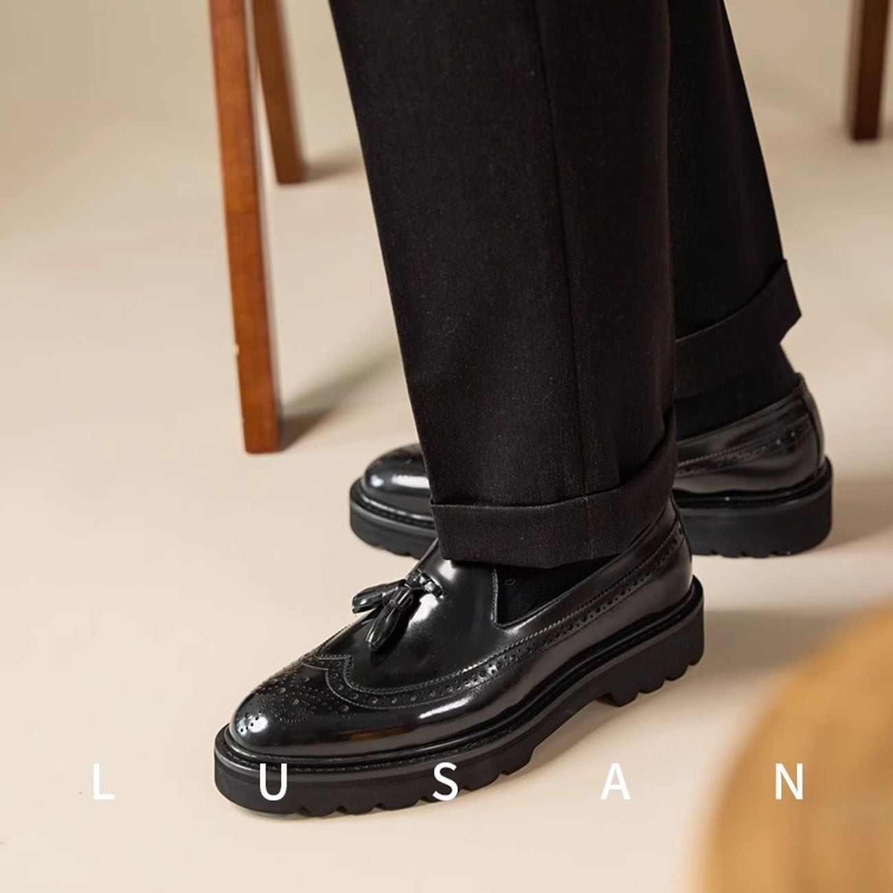タッセルデザインがアクセントになった厚底ローファー。クラシカルなウイングチップデザインに、おしゃれなタッセルが加わり、上品さと遊び心を兼ね備えた一足です。厚底ソールでスタイルアップ効果も期待でき、デイリーユースから特別な日まで、幅広いシーンで活躍します。