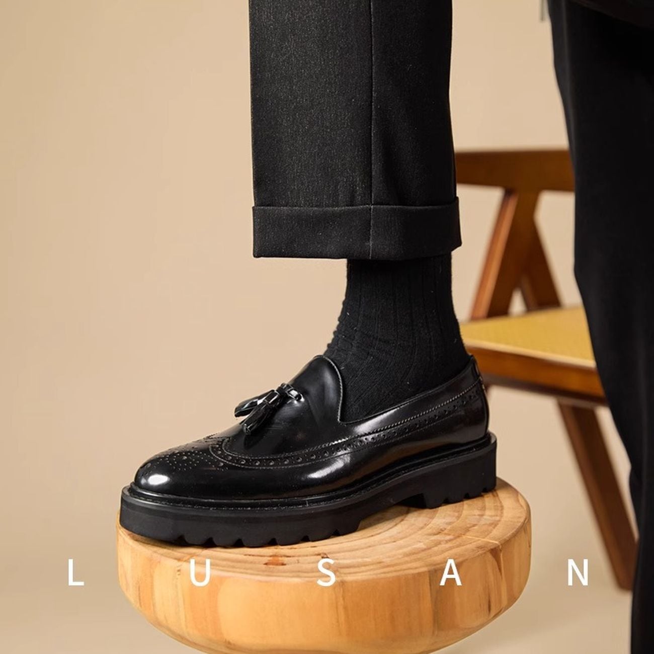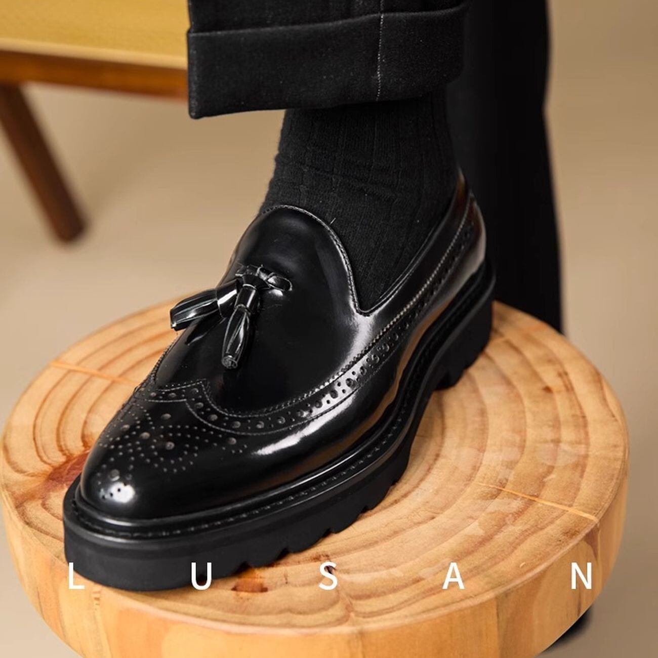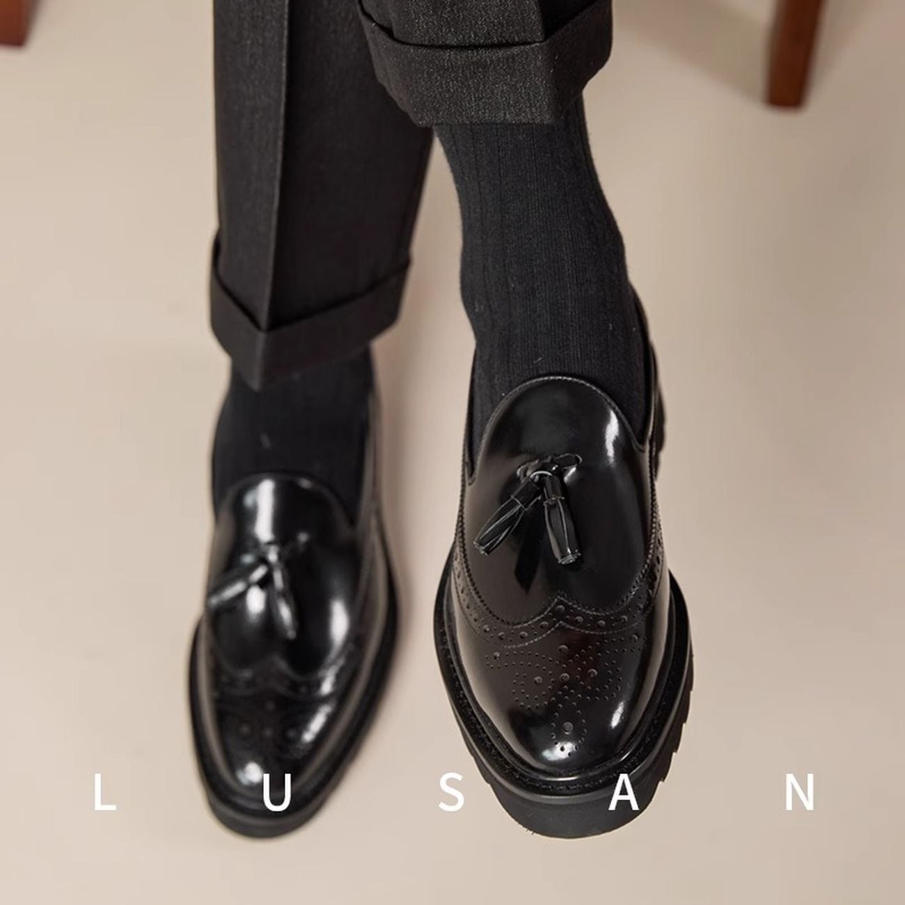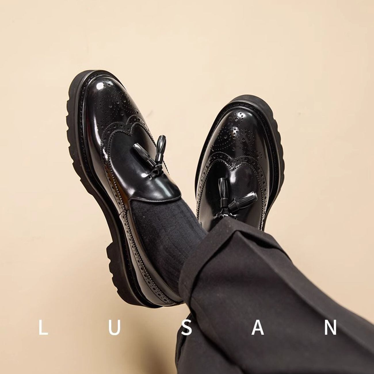 タッセルデザインがアクセントになった厚底ローファー。クラシカルなウイングチップデザインに、おしゃれなタッセルが加わり、上品さと遊び心を兼ね備えた一足です。厚底ソールでスタイルアップ効果も期待でき、デイリーユースから特別な日まで、幅広いシーンで活躍します。