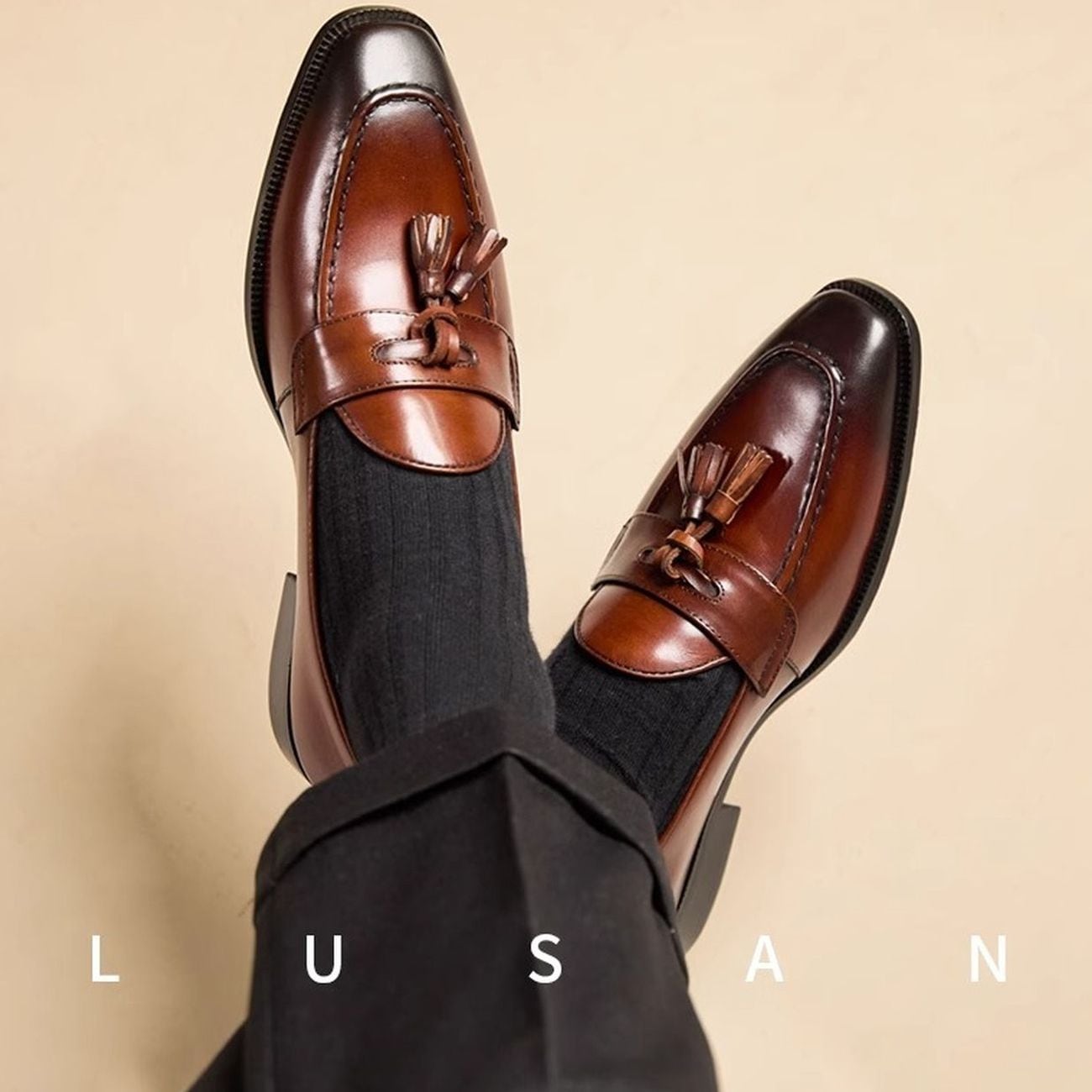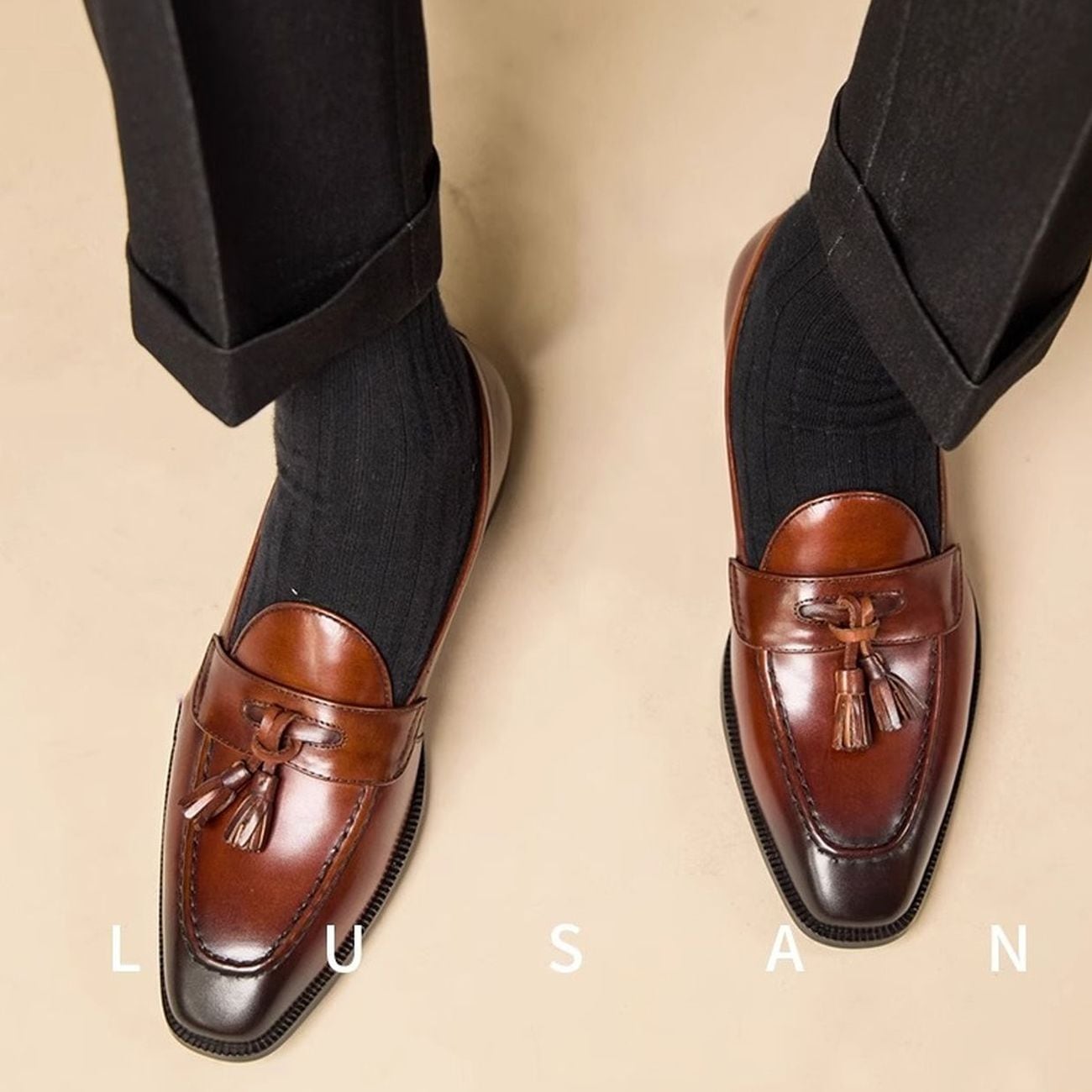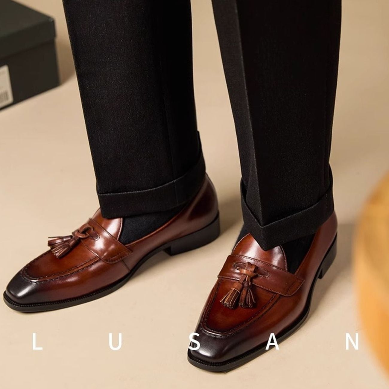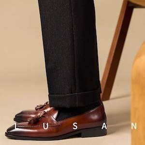 タッセルデザインがアクセントになったローファー。クラシカルなウイングチップデザインに、おしゃれなタッセルが加わり、上品さと遊び心を兼ね備えた一足です。