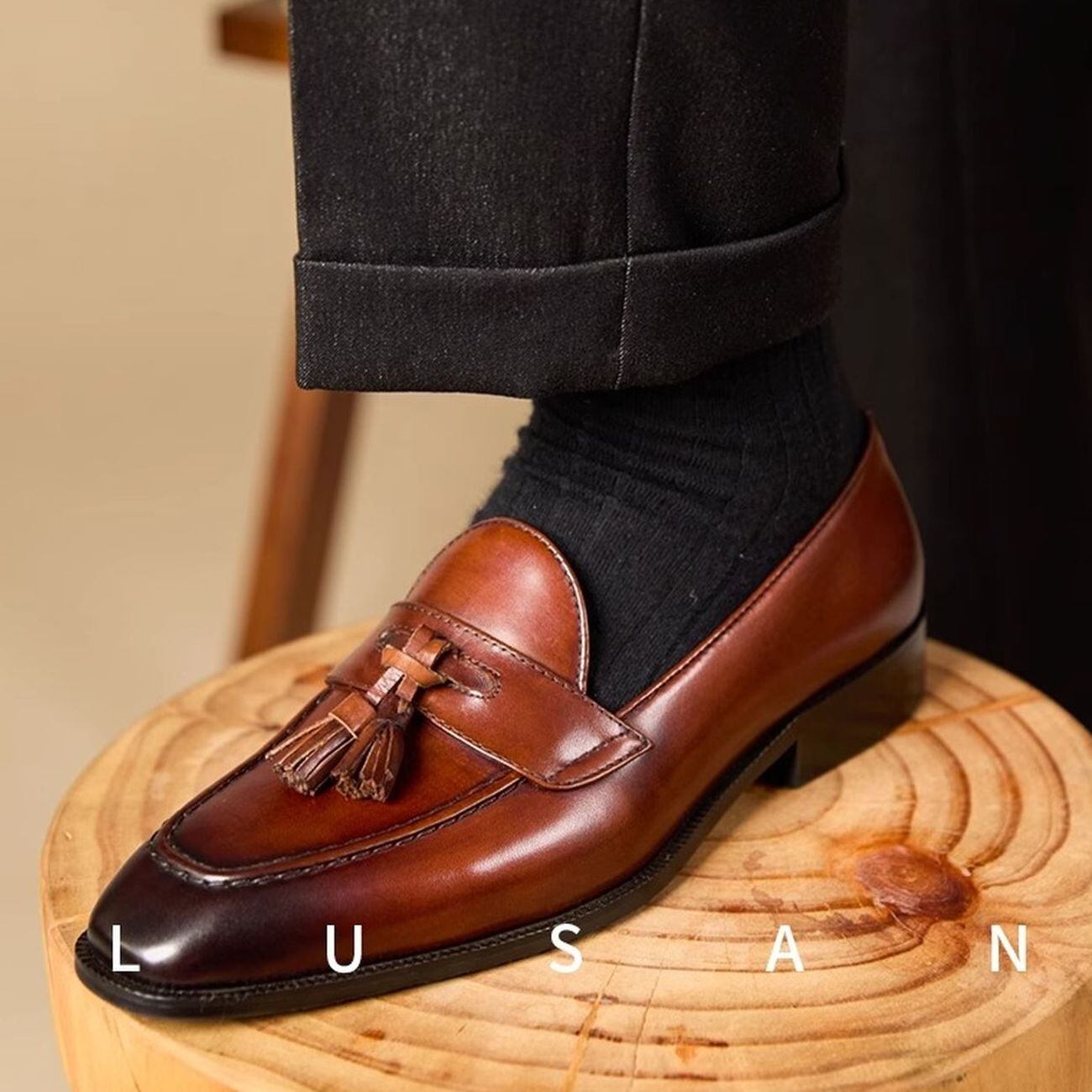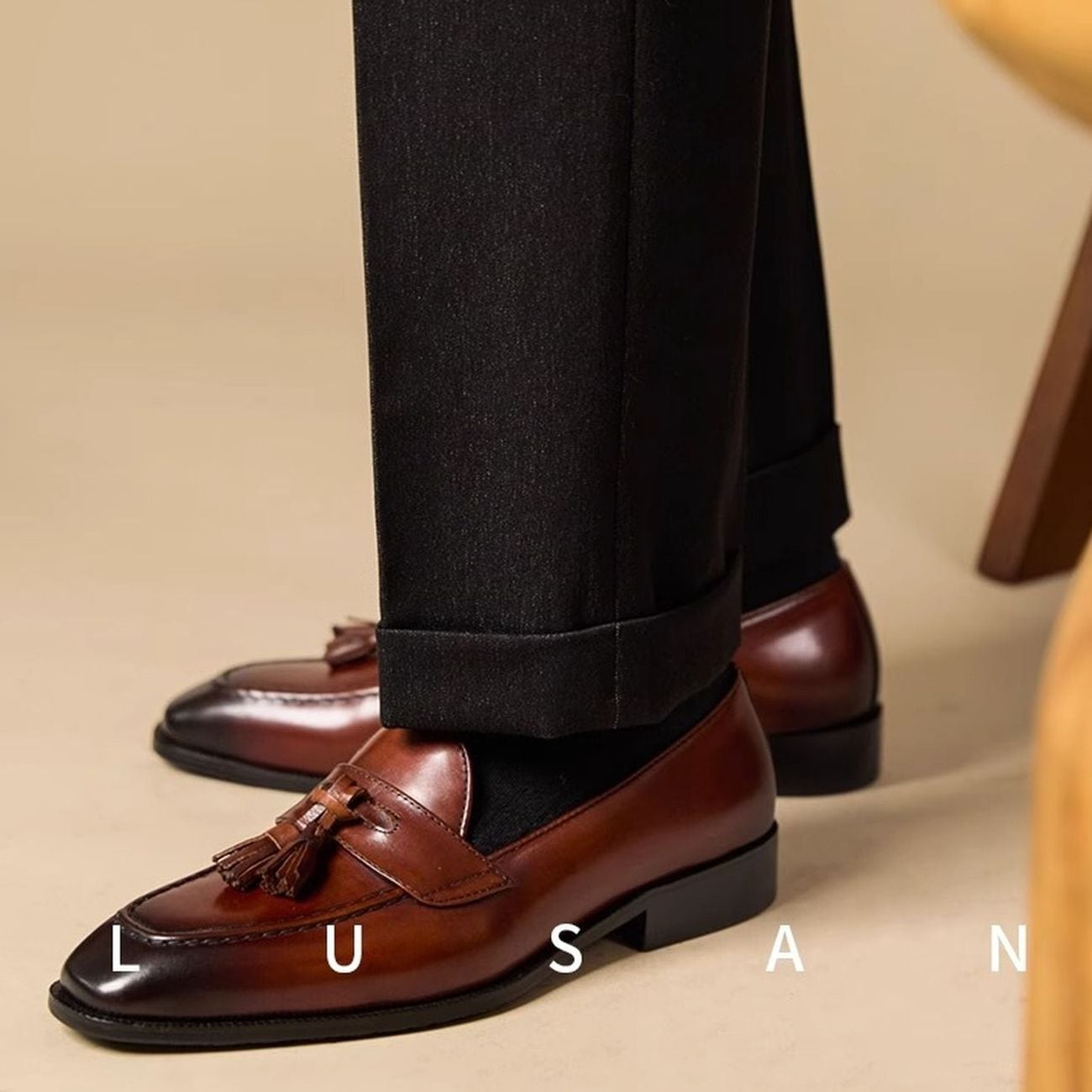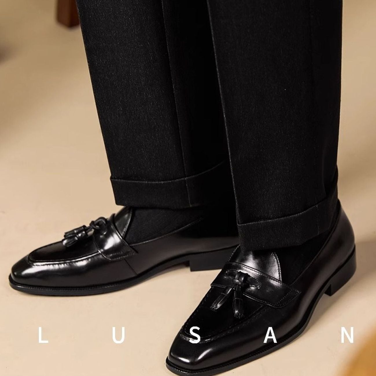 タッセルデザインがアクセントになったローファー。クラシカルなウイングチップデザインに、おしゃれなタッセルが加わり、上品さと遊び心を兼ね備えた一足です。