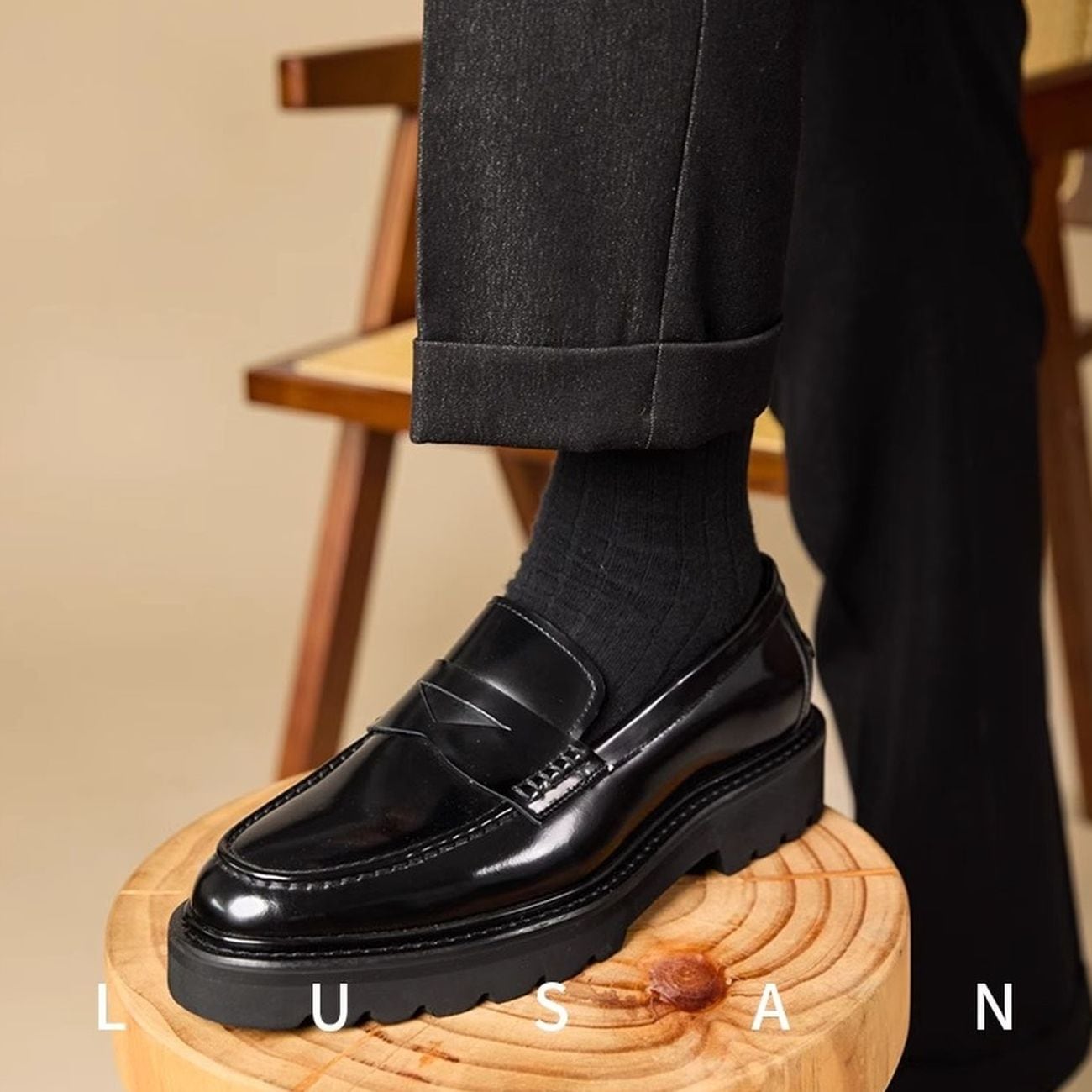スマートなフォルムと上質な素材感が際立つコインローファー。ラウンドトゥの柔らかなシルエットと、精緻なステッチワークが魅力的です。カジュアルスタイルにもフォーマルスタイルにも対応可能な、汎用性の高い一足です。