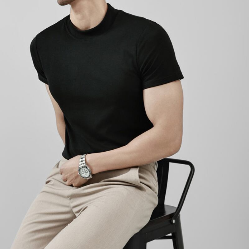 クルーネック 半袖 メンズ モックネックTシャツ 4color KA1225