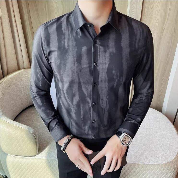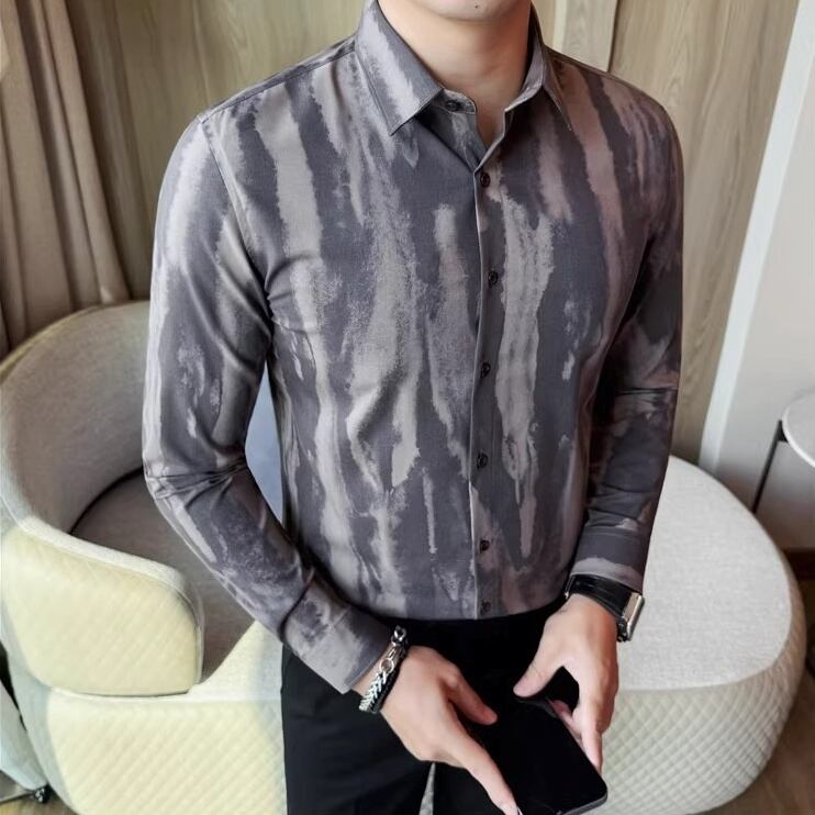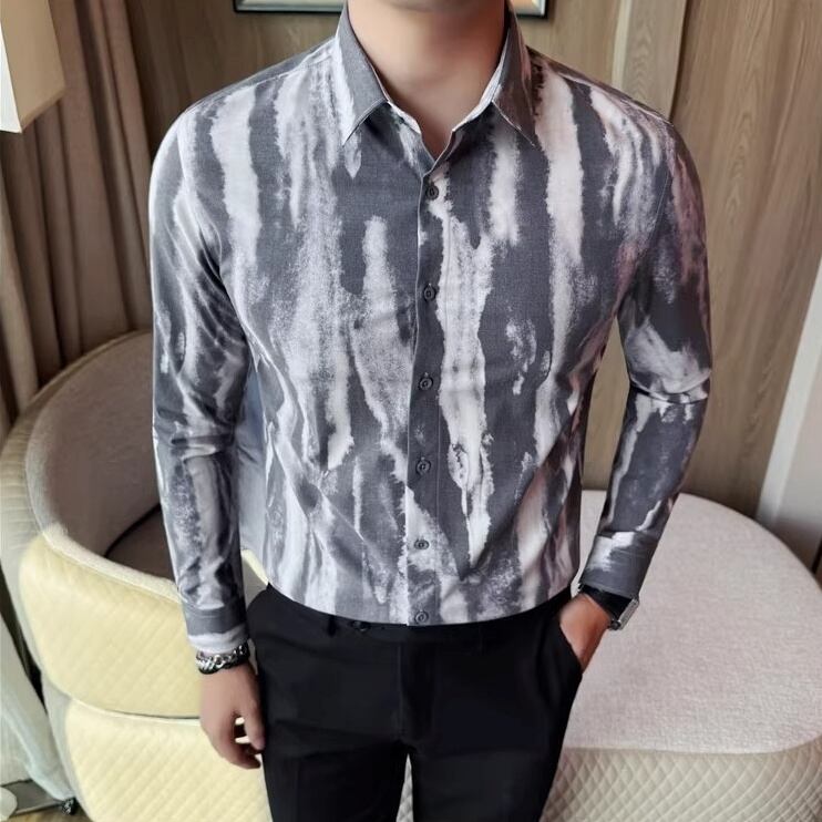 抽象的な柄が目を惹く長袖シャツ。レギュラーカラーとボタンダウンのシンプルなデザインで、ビジネスシーンにもカジュアルシーンにも活躍します。一つ持っていると着回し力抜群で、様々なスタイルに合わせやすいのが魅力です。