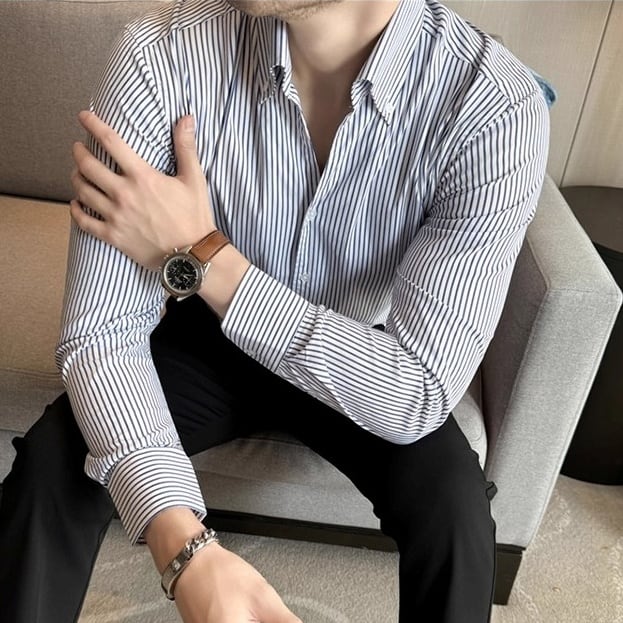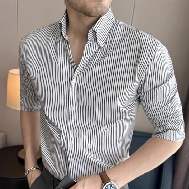 縦ストライプ柄長袖ボタンダウンシャツ 2color KA1265
