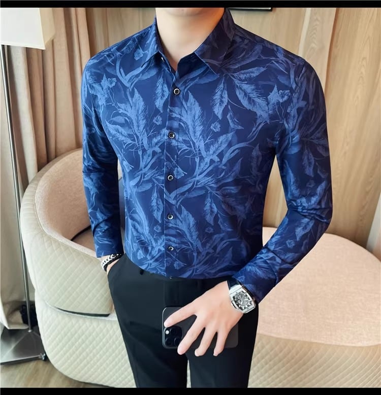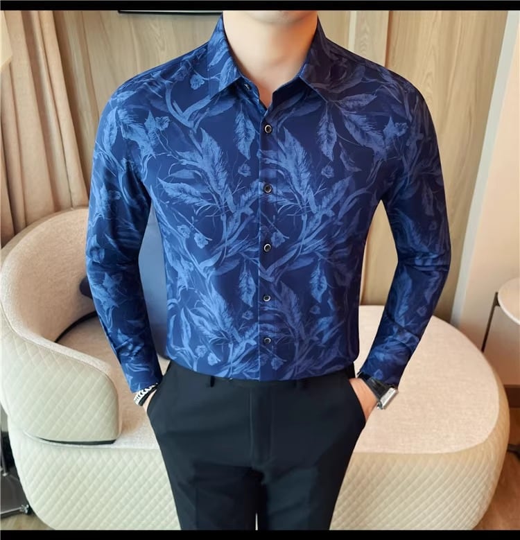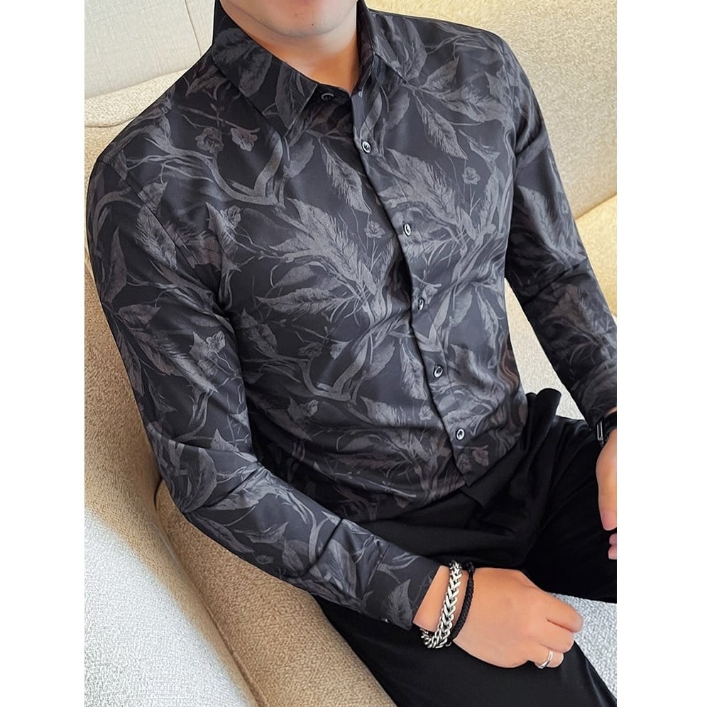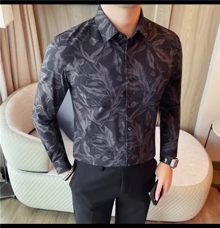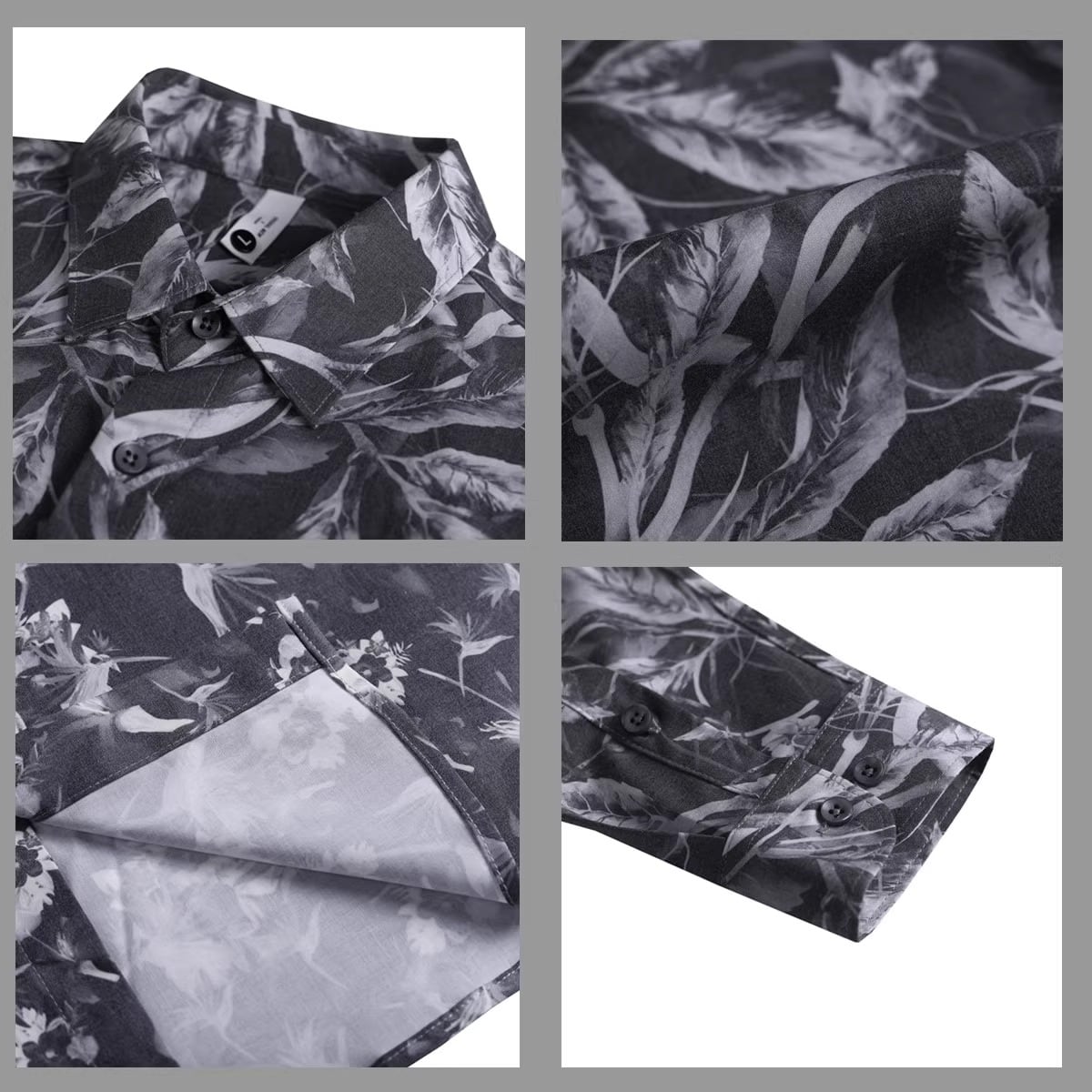 リーフ柄が印象的な長袖シャツ。ストレートシルエットで、様々なシーンで活躍します。落ち着いた色合いのリーフ柄は、ビジネスシーンにもカジュアルシーンにも自然と溶け込みます。デイリーユースに最適な一着です。