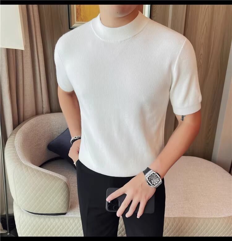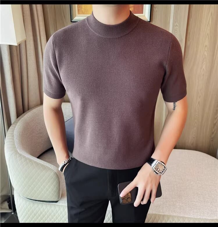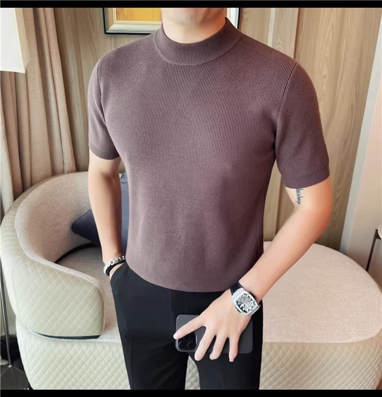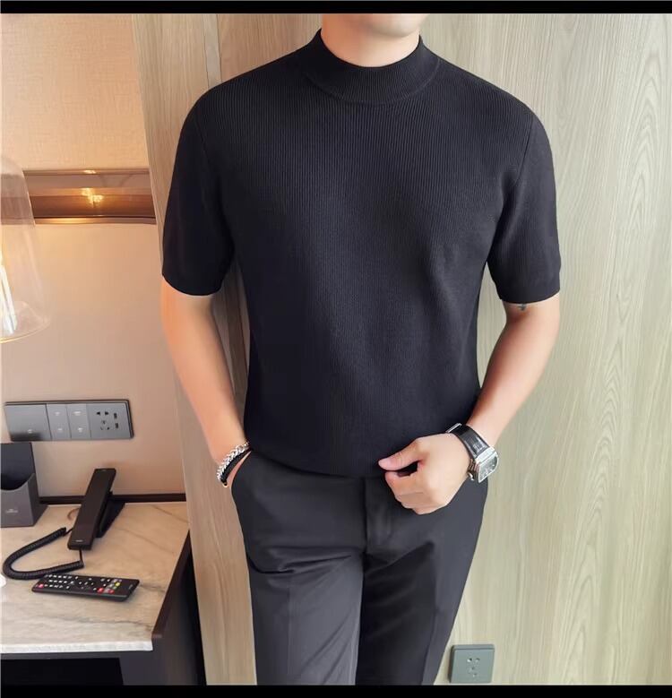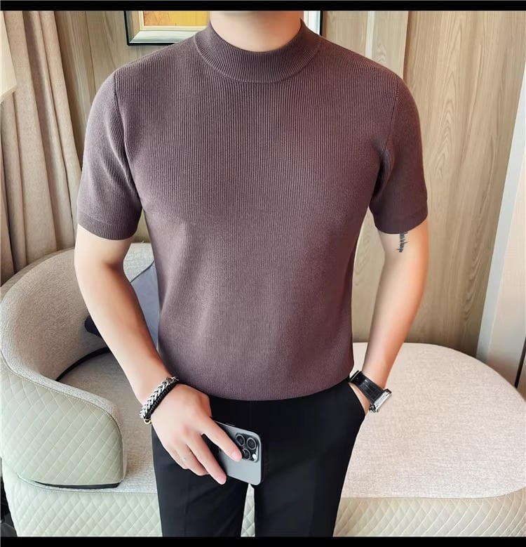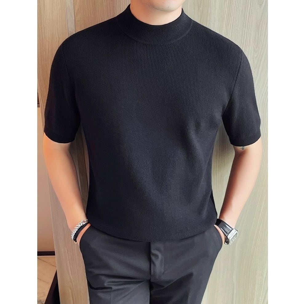 半袖ハイネックTシャツ。リブニットの程よいフィット感が、大人な印象を演出します。クルーネックデザインで、様々なスタイルに合わせやすく、デイリーコーデに活躍すること間違いなしの一枚です。