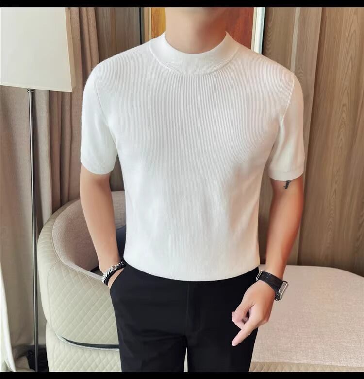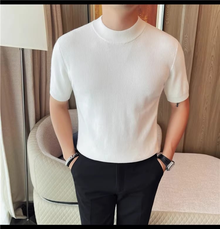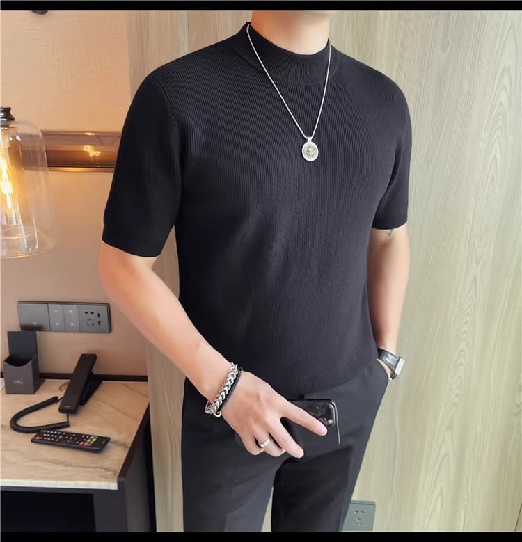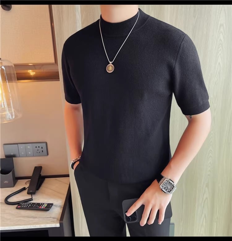 リブニット半袖ハイネッククルーネックTシャツ 3color KA1256