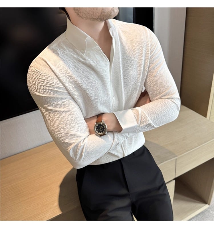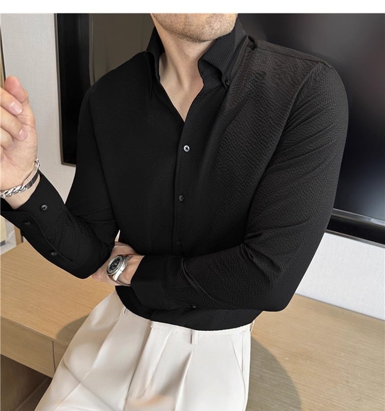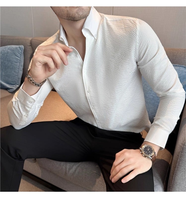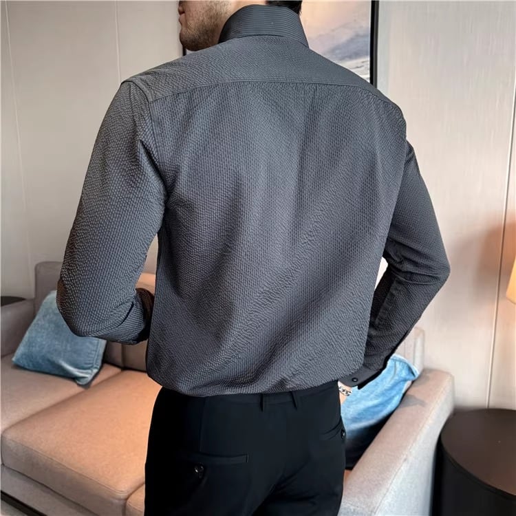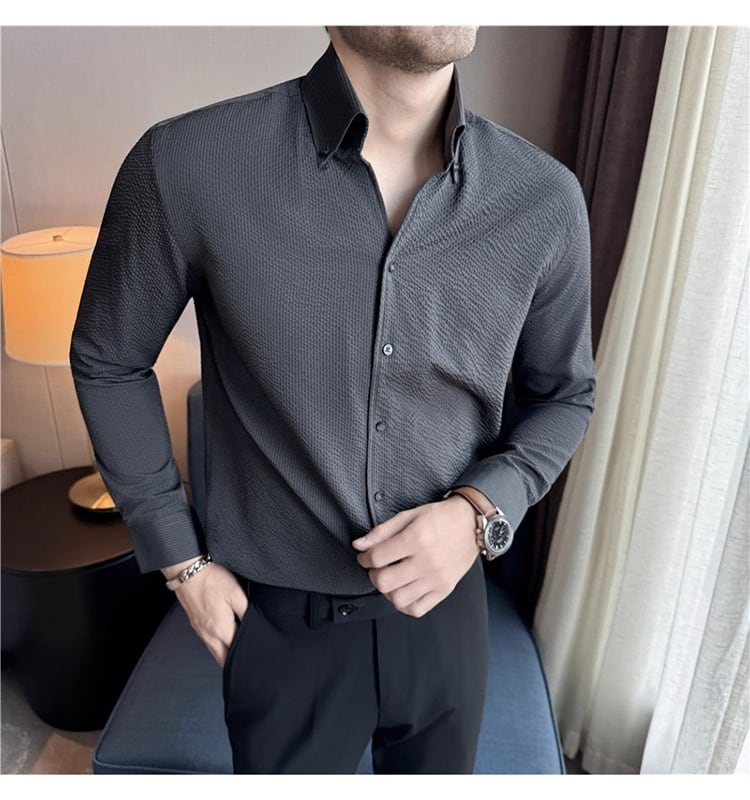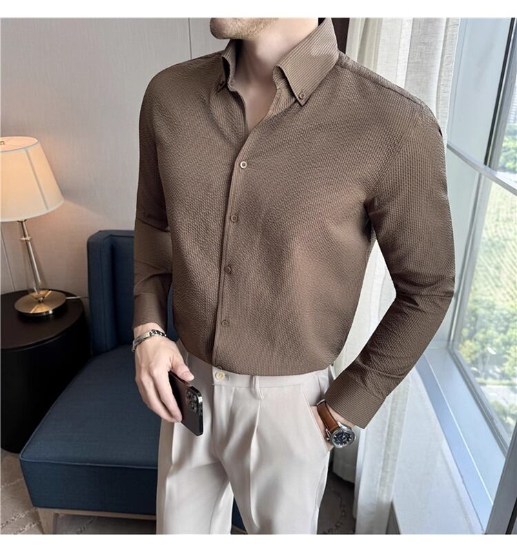 テクスチャード長袖ボタンダウンシャツ。上品な印象と着心地の良さを両立した、デイリーユースに最適な一着です。ビジネスシーンからカジュアルシーンまで幅広く活躍し、着こなしの幅を広げます。様々なコーディネートに合わせやすく、着回し力も抜群です。