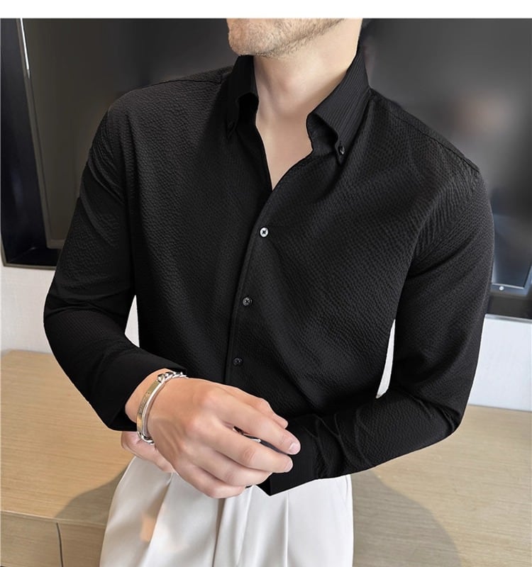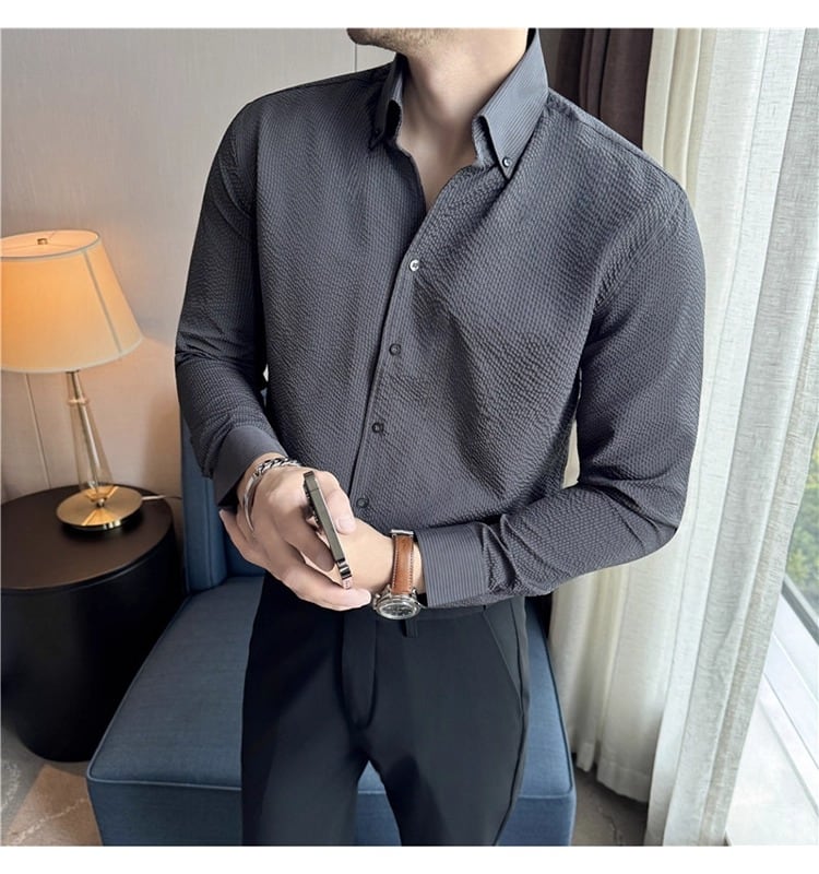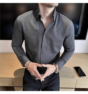 テクスチャード長袖ボタンダウンシャツ 4color KA1272