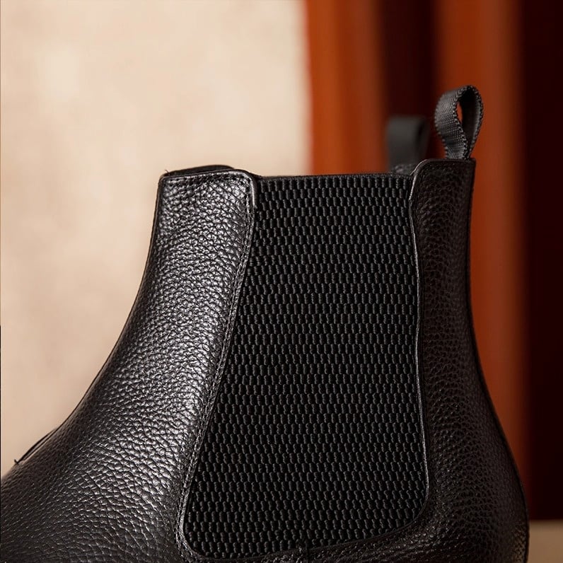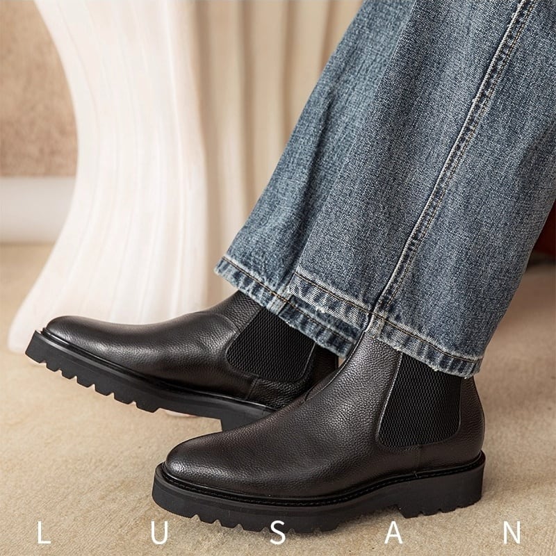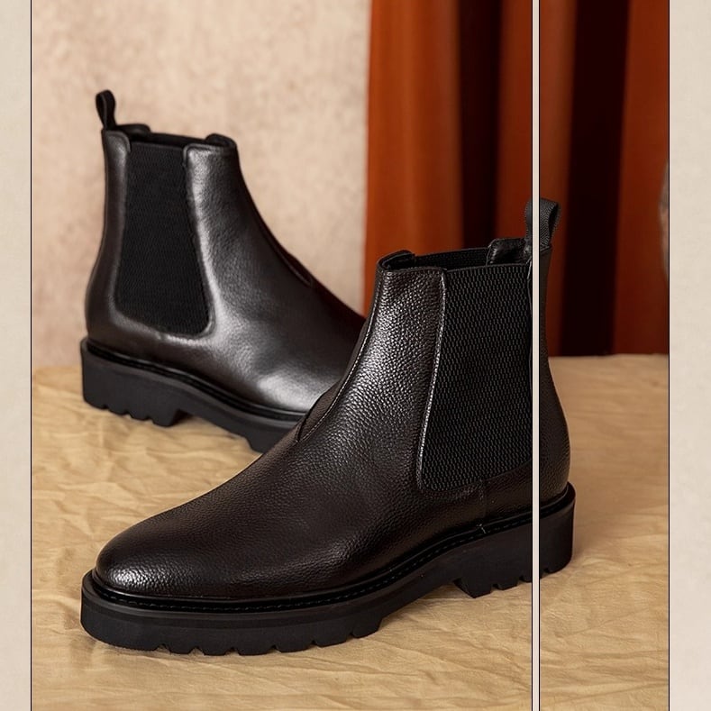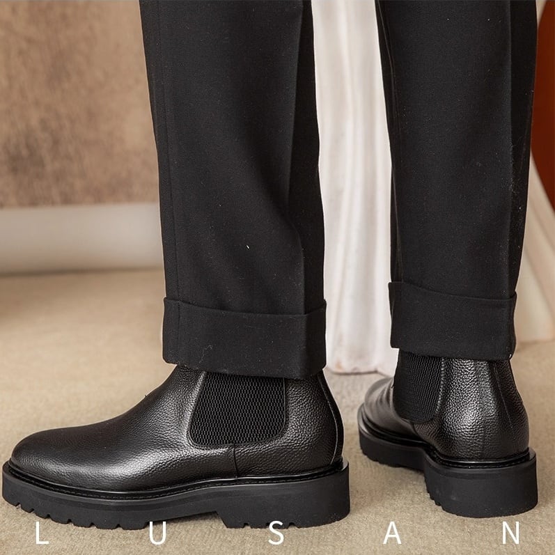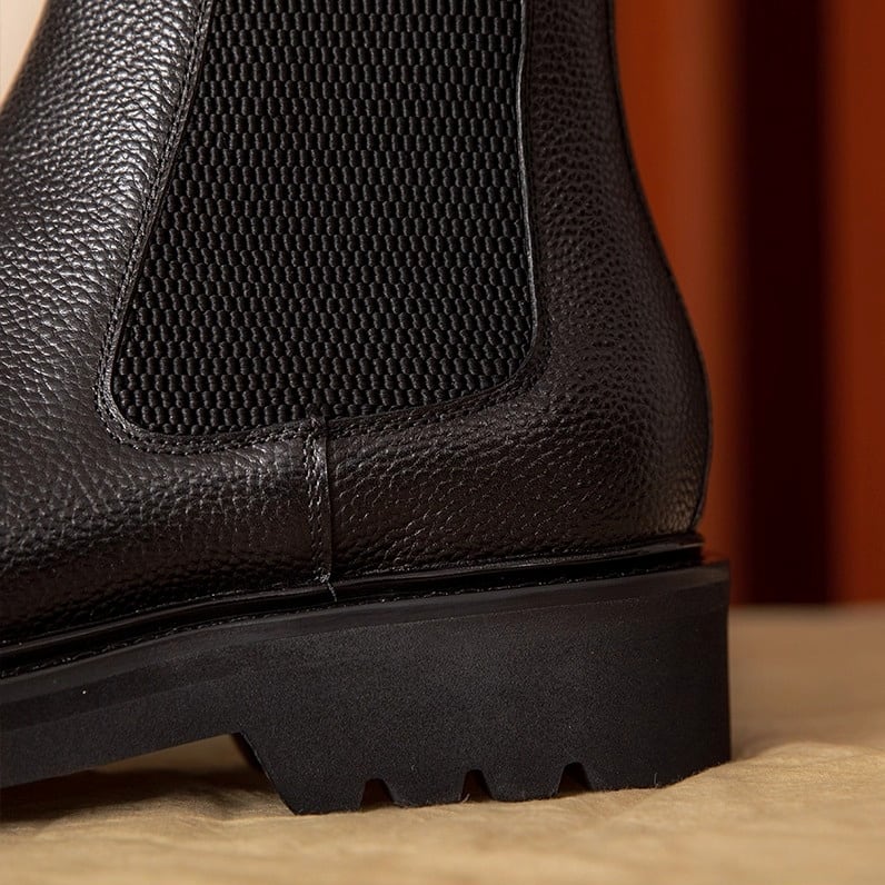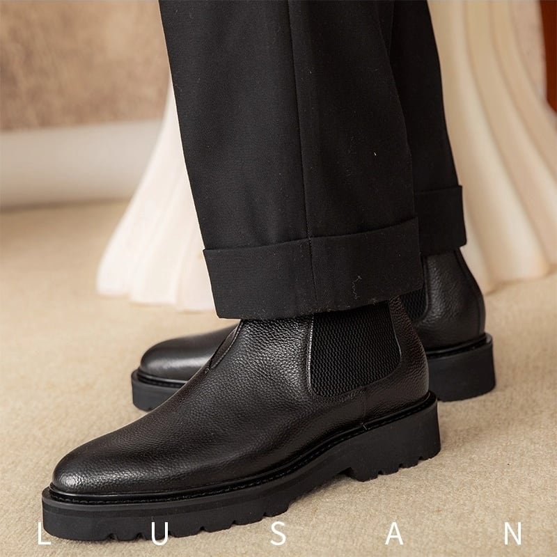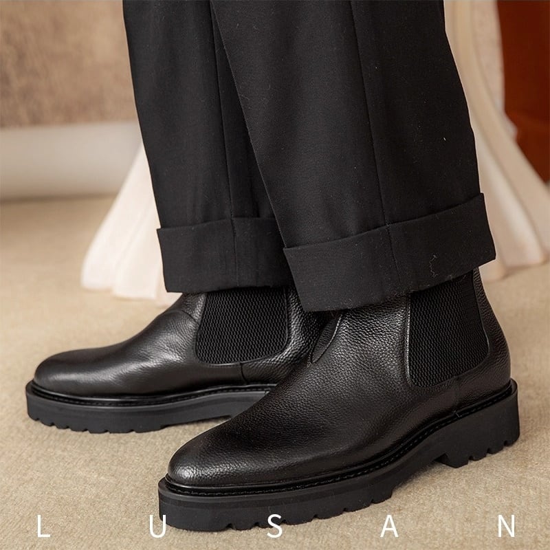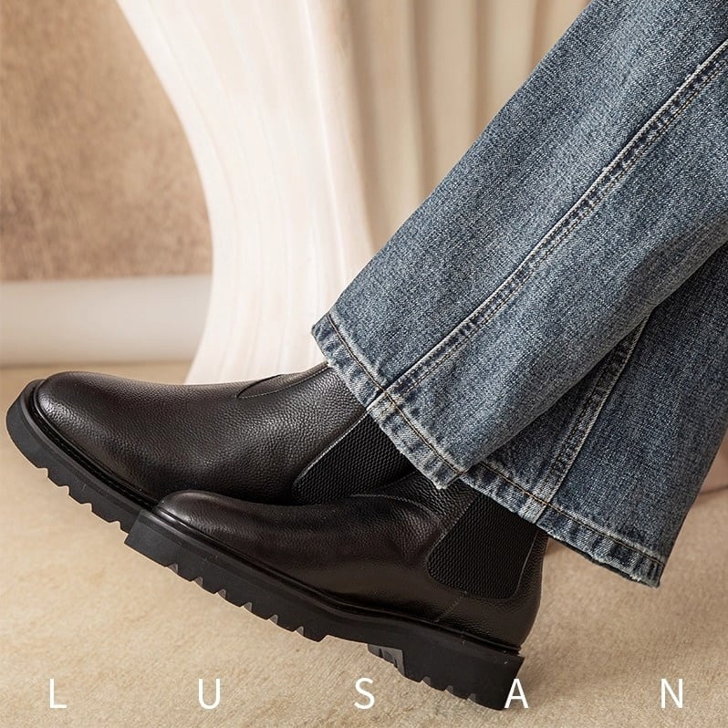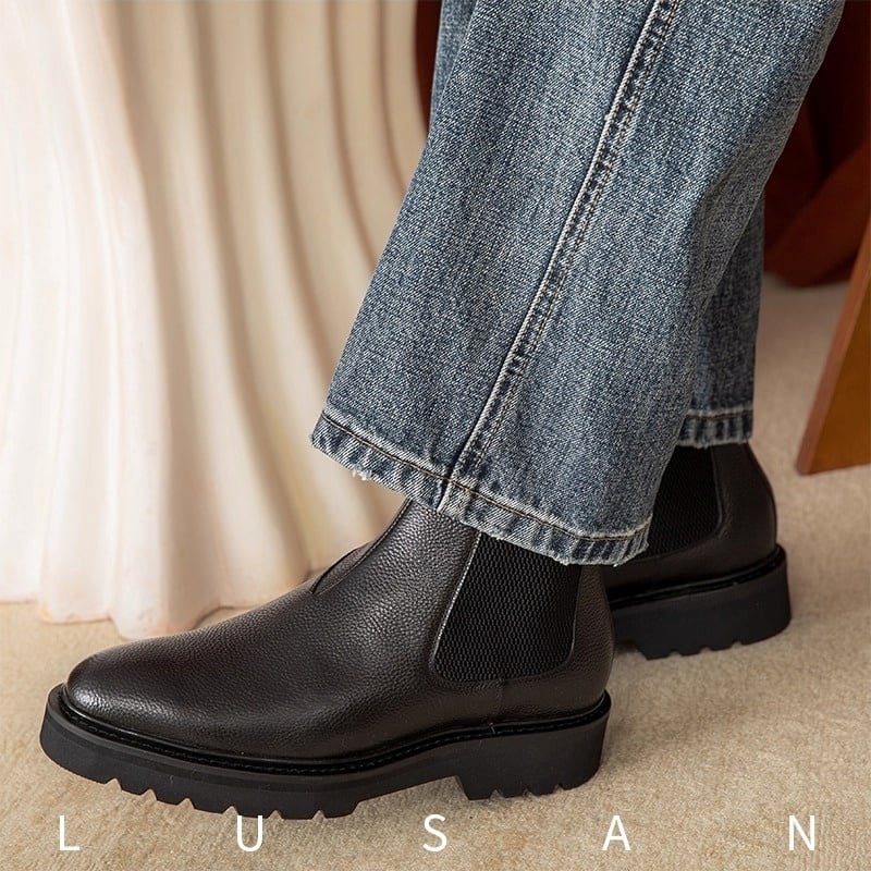 ラウンドトゥと厚底が特徴的なチェルシーブーツ。シンプルなデザインながら、洗練された印象を与え、様々なスタイルに合わせやすい汎用性の高さが魅力です。デイリーコーデから、よりフォーマルな装いまで幅広く活躍します。