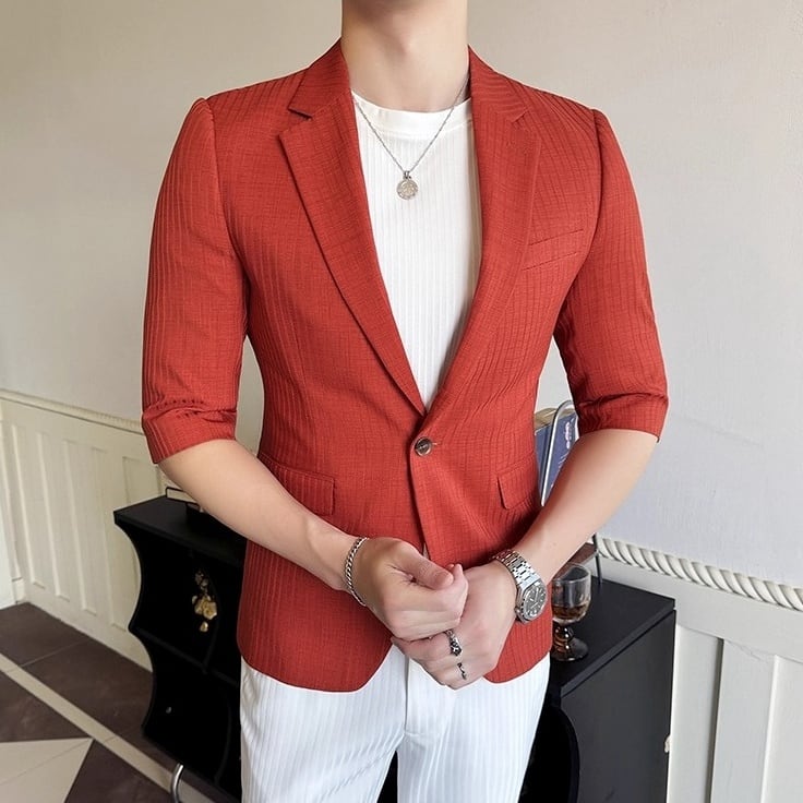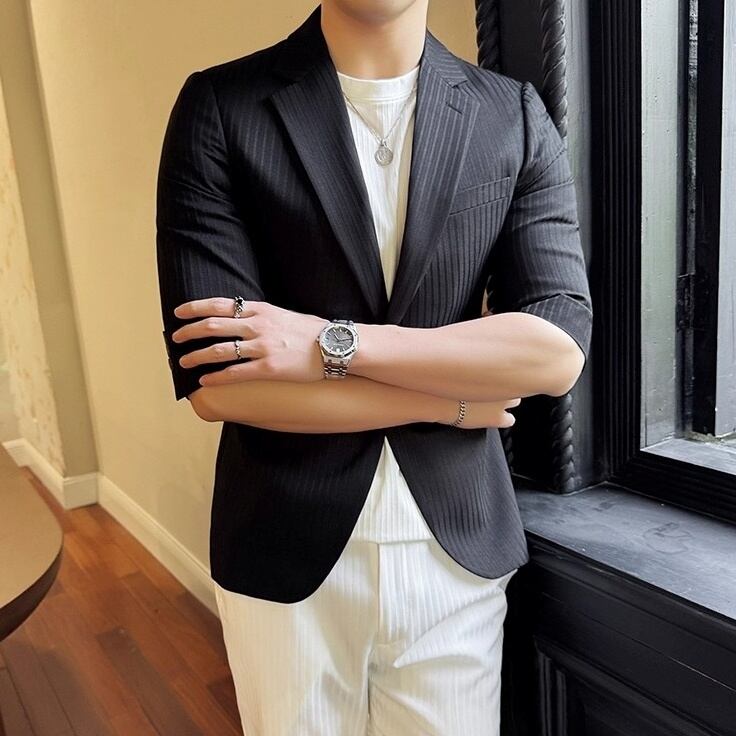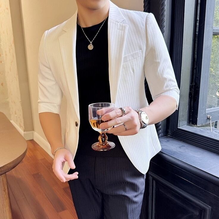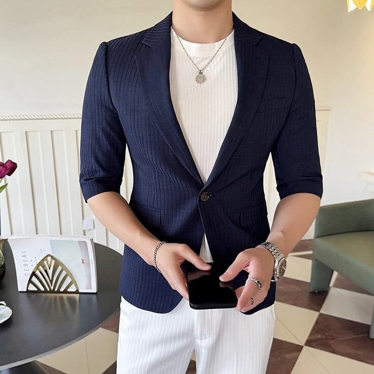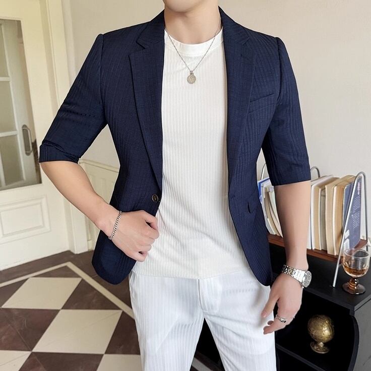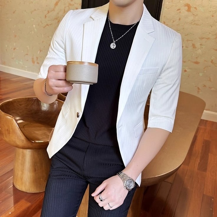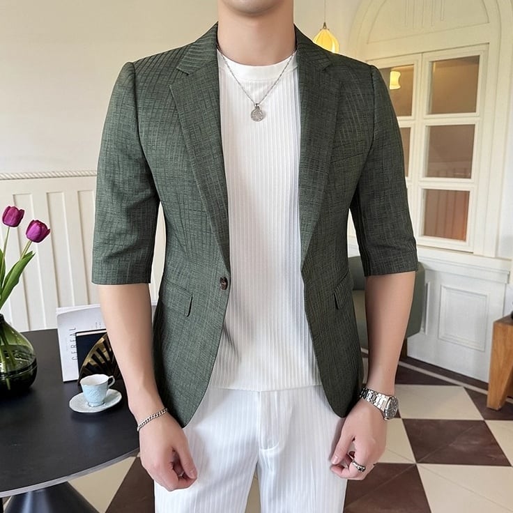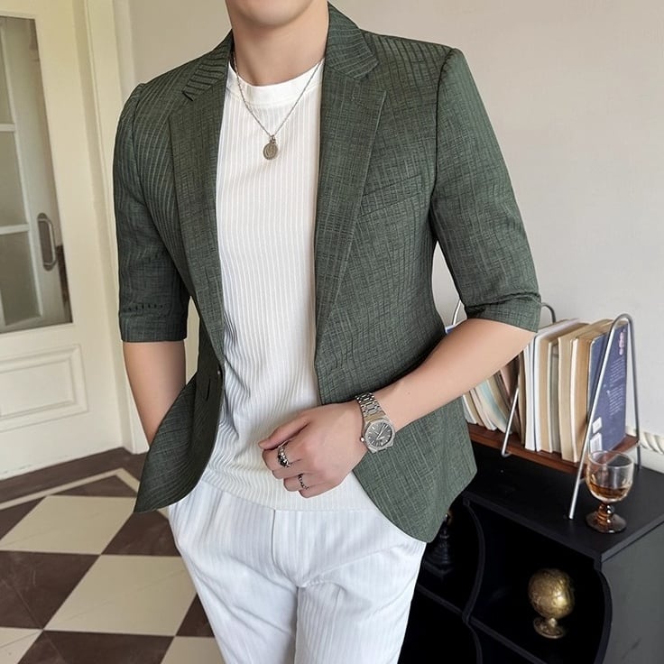大人の雰囲気を演出するハーフスリーブジャケット。