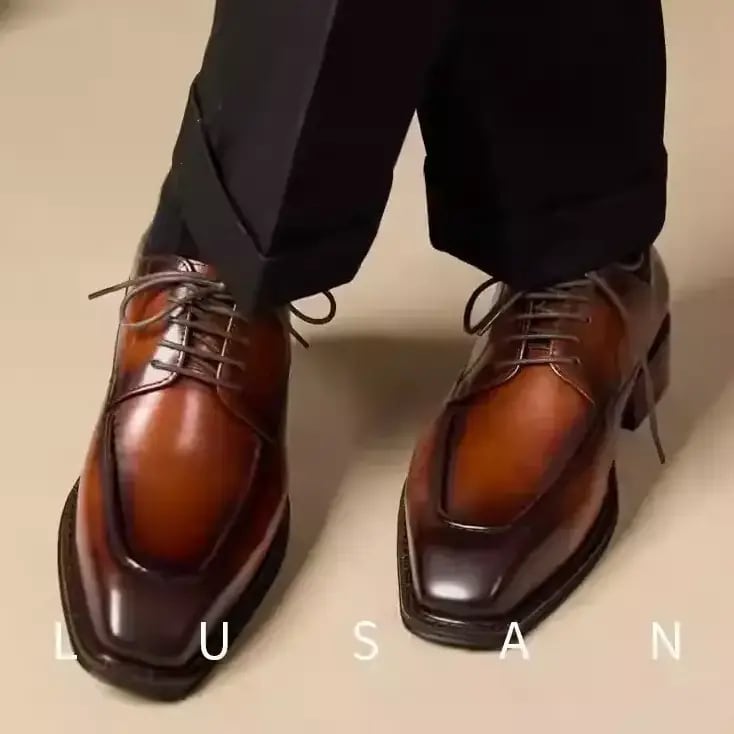 レースアップ スクエアトゥ レザーシューズ 2color SH0118