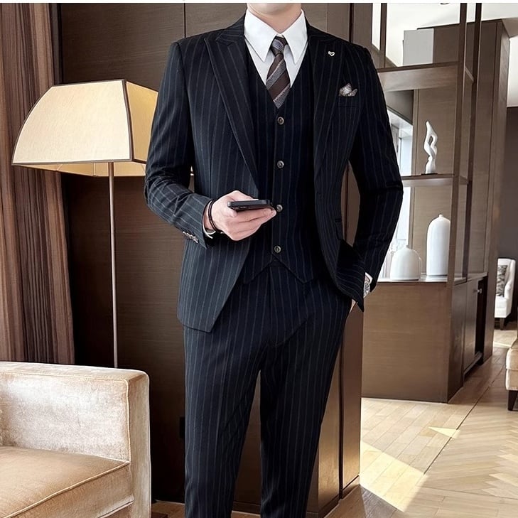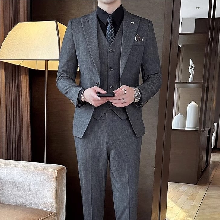 ビジネスシーンはもちろん、カジュアルなスタイルにも合わせやすい汎用性の高さが特徴です。スリムなシルエットで、スマートな着こなしを演出します。
