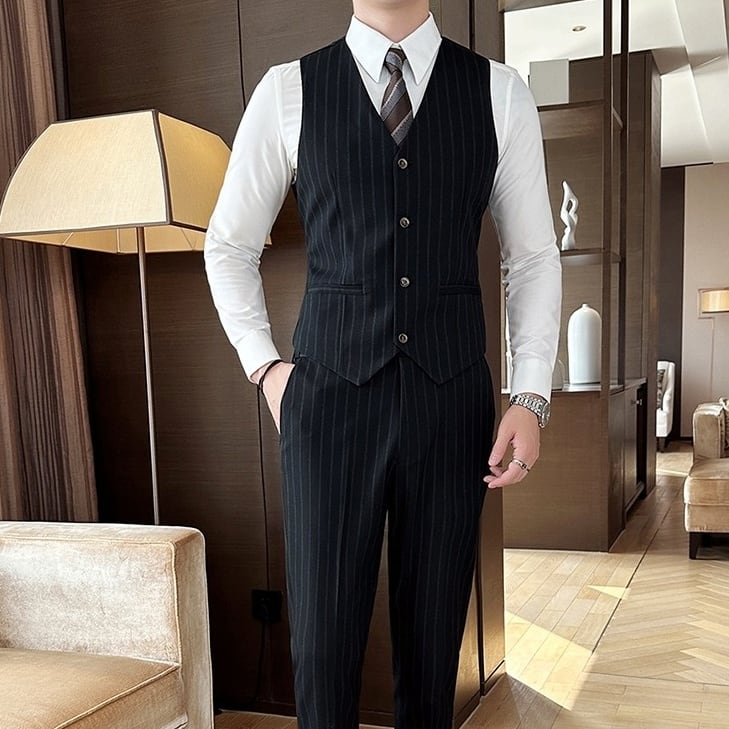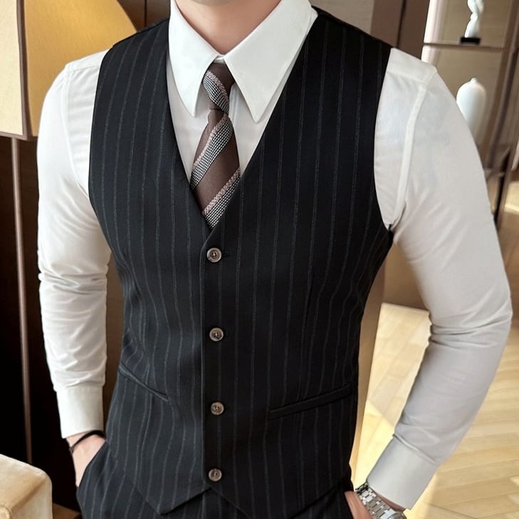 上品なストライプ柄が魅力のボタンフロントベスト。