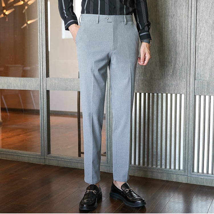 クロップド丈なので、軽快な足元を演出し、ビジネスシーンからカジュアルな装いまで幅広く活躍します。