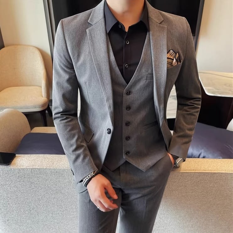 ジャケットとパンツのセットです。別途、同デザインのベストもご用意しております。