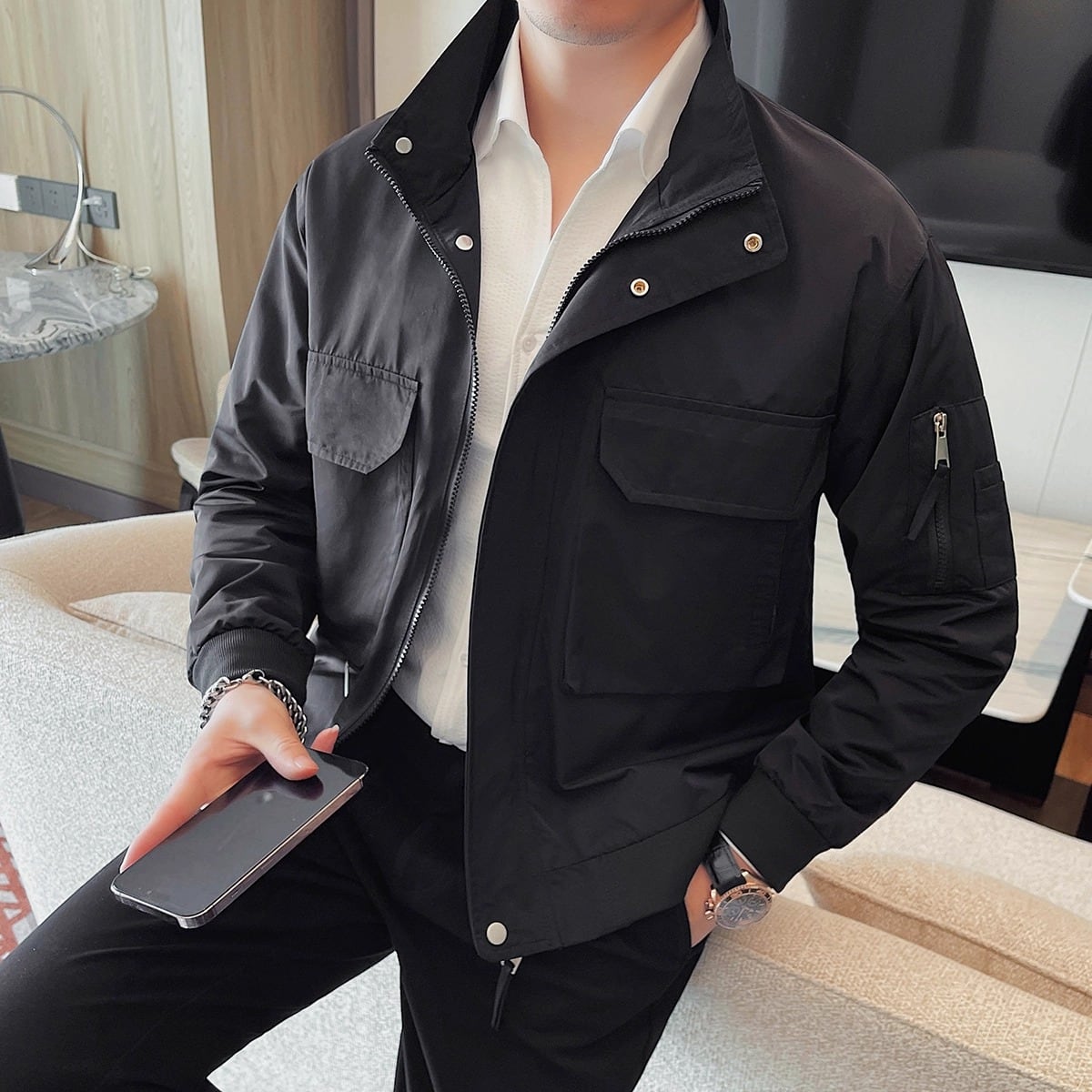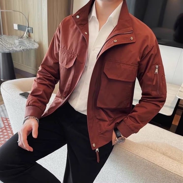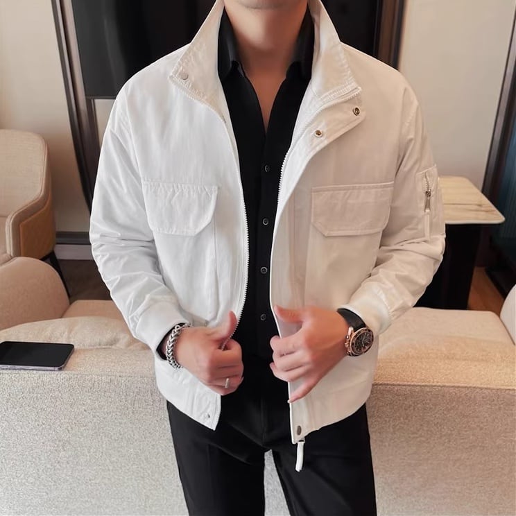 上品な印象を与えるスタンドカラージャケット。