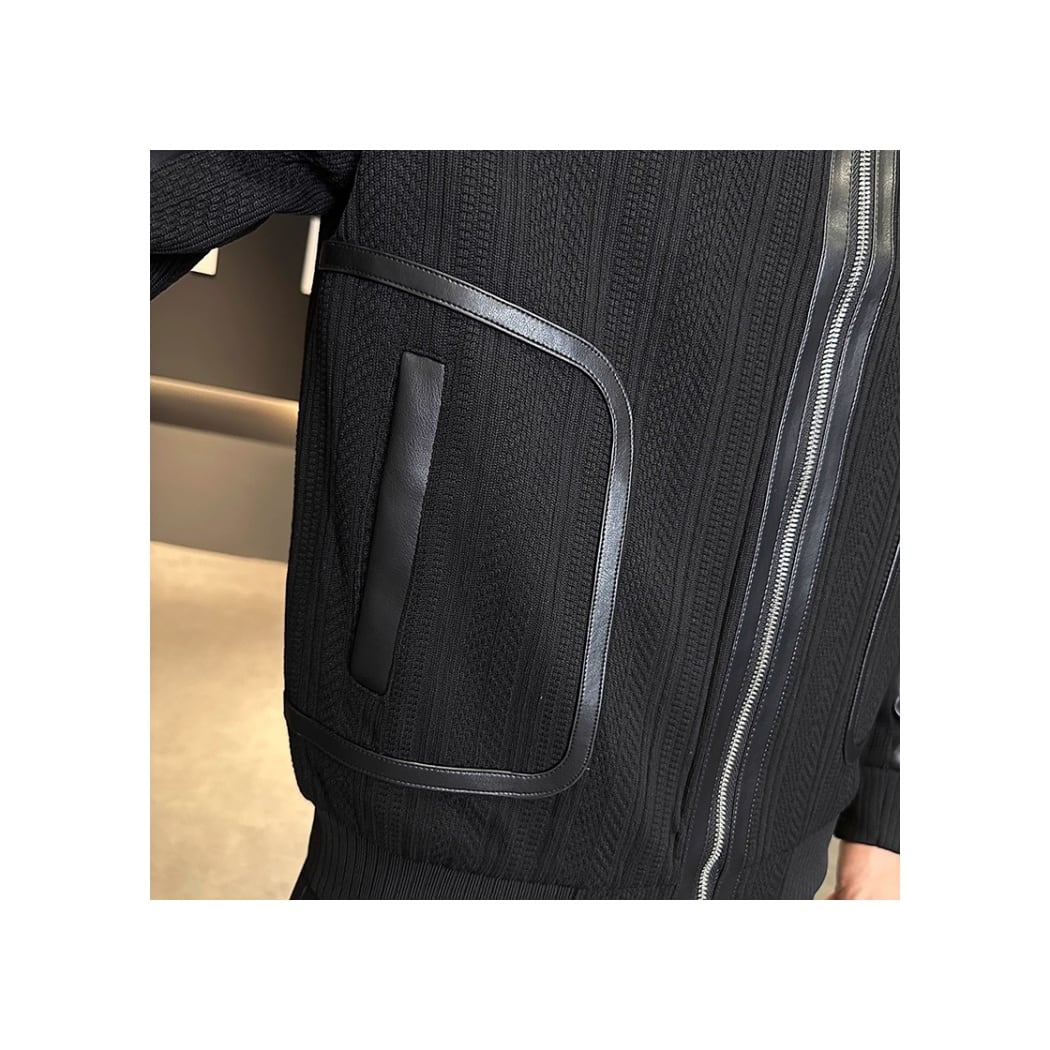 異素材の切り替えが特徴的なジップブルゾン。