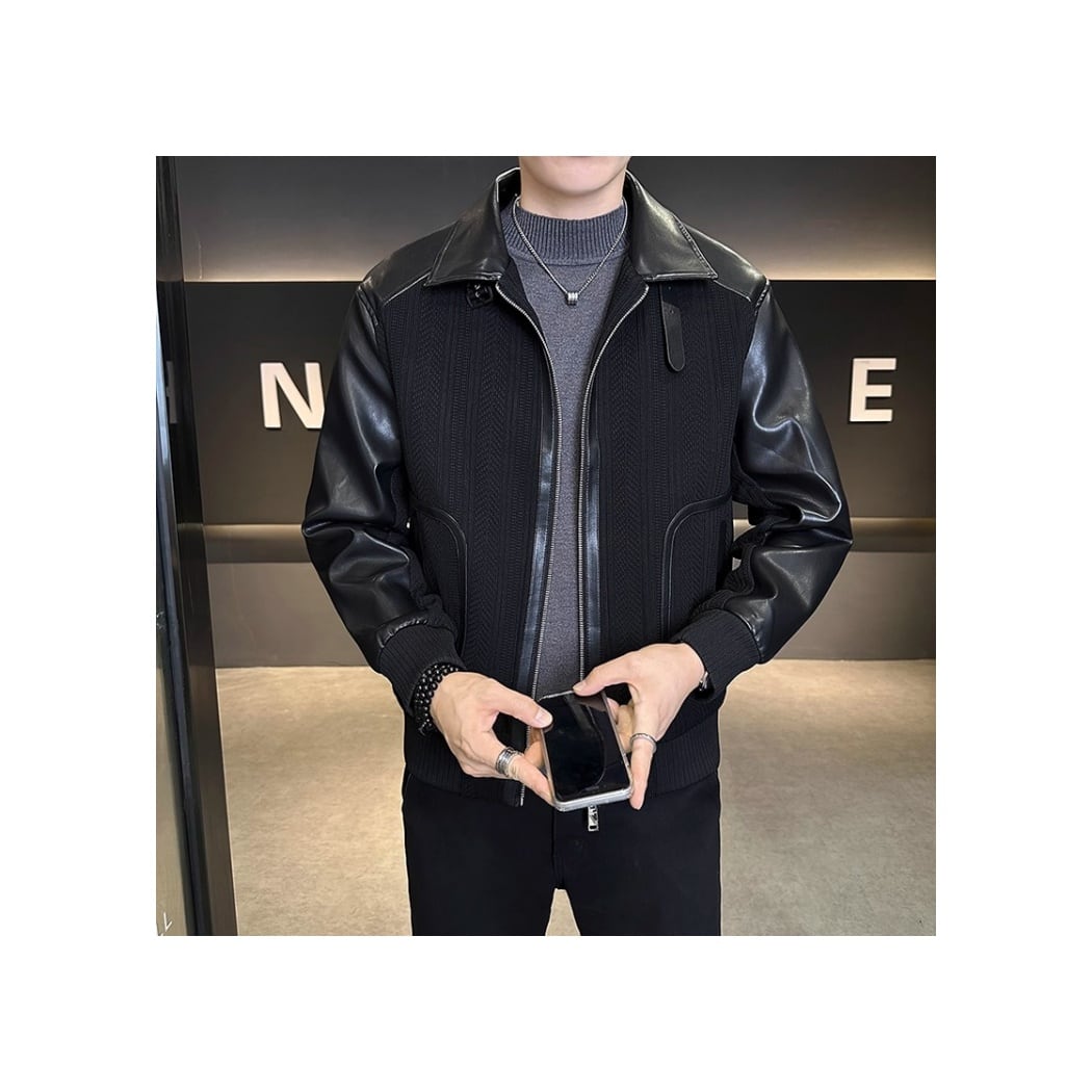 フェイクレザー切替ジップブルゾン 2color OJ0632