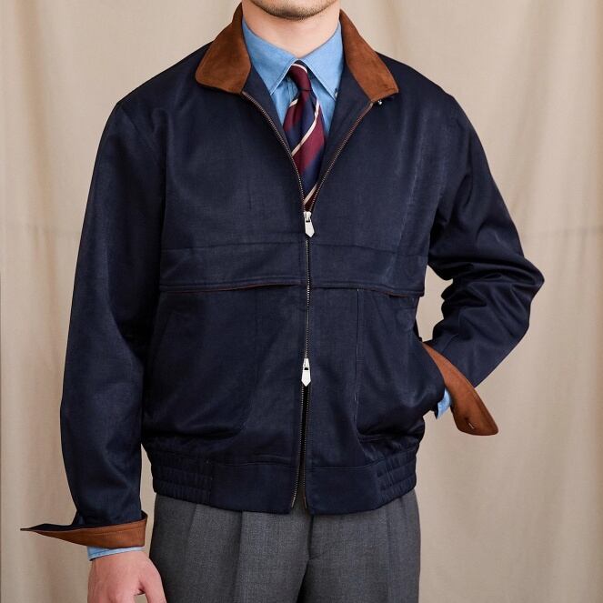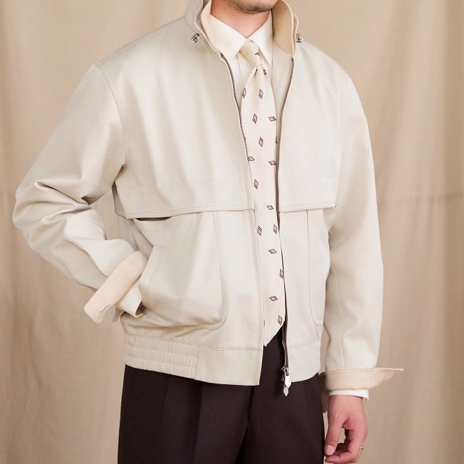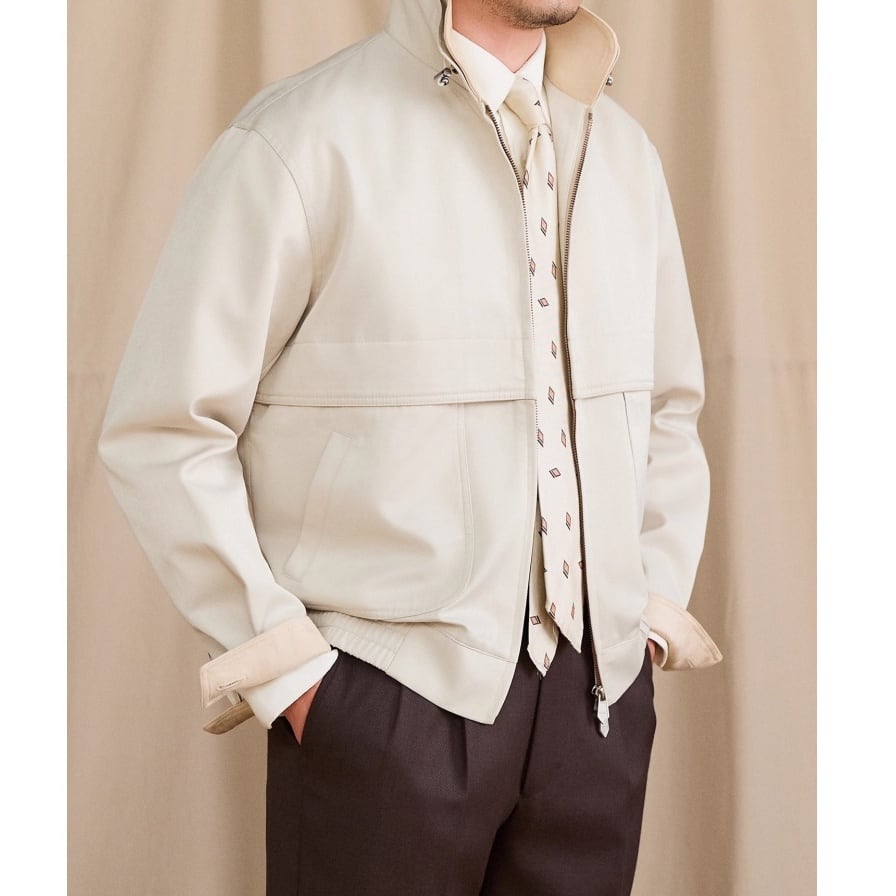 洗練された印象を与えるスウィングトップブルゾン。