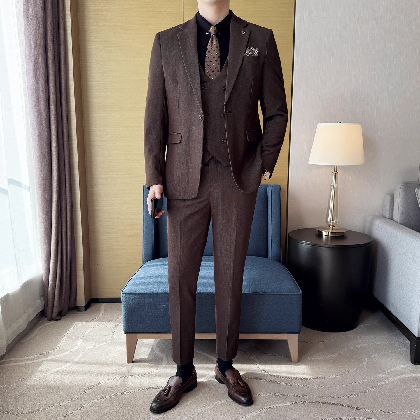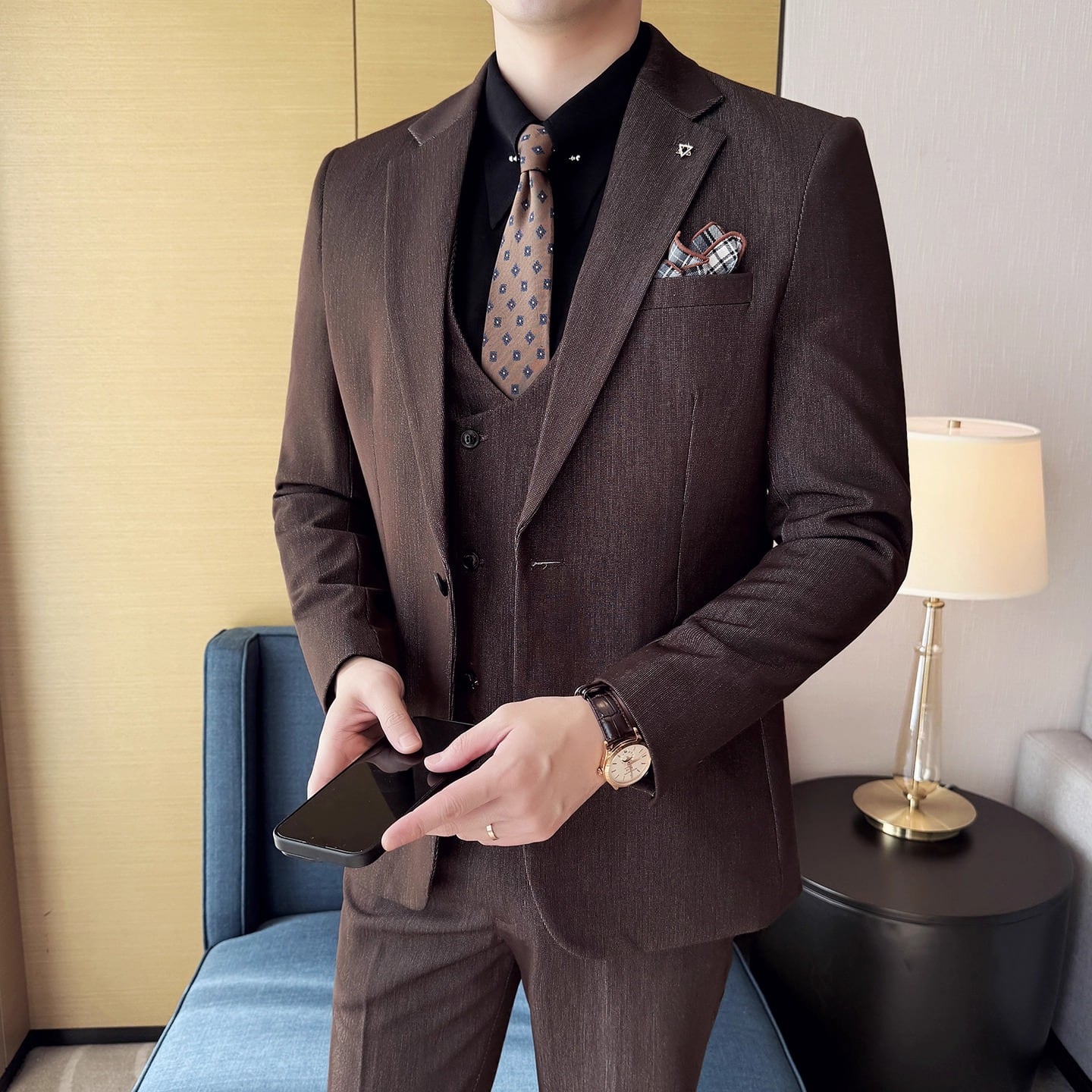 洗練されたシルエットが魅力的なフォーマルスーツ。ビジネスシーンはもちろん、パーティーやイベントなど、特別な日の装いにも最適です。スマートな印象を与え、周囲と差をつけるスタイリングを演出します。