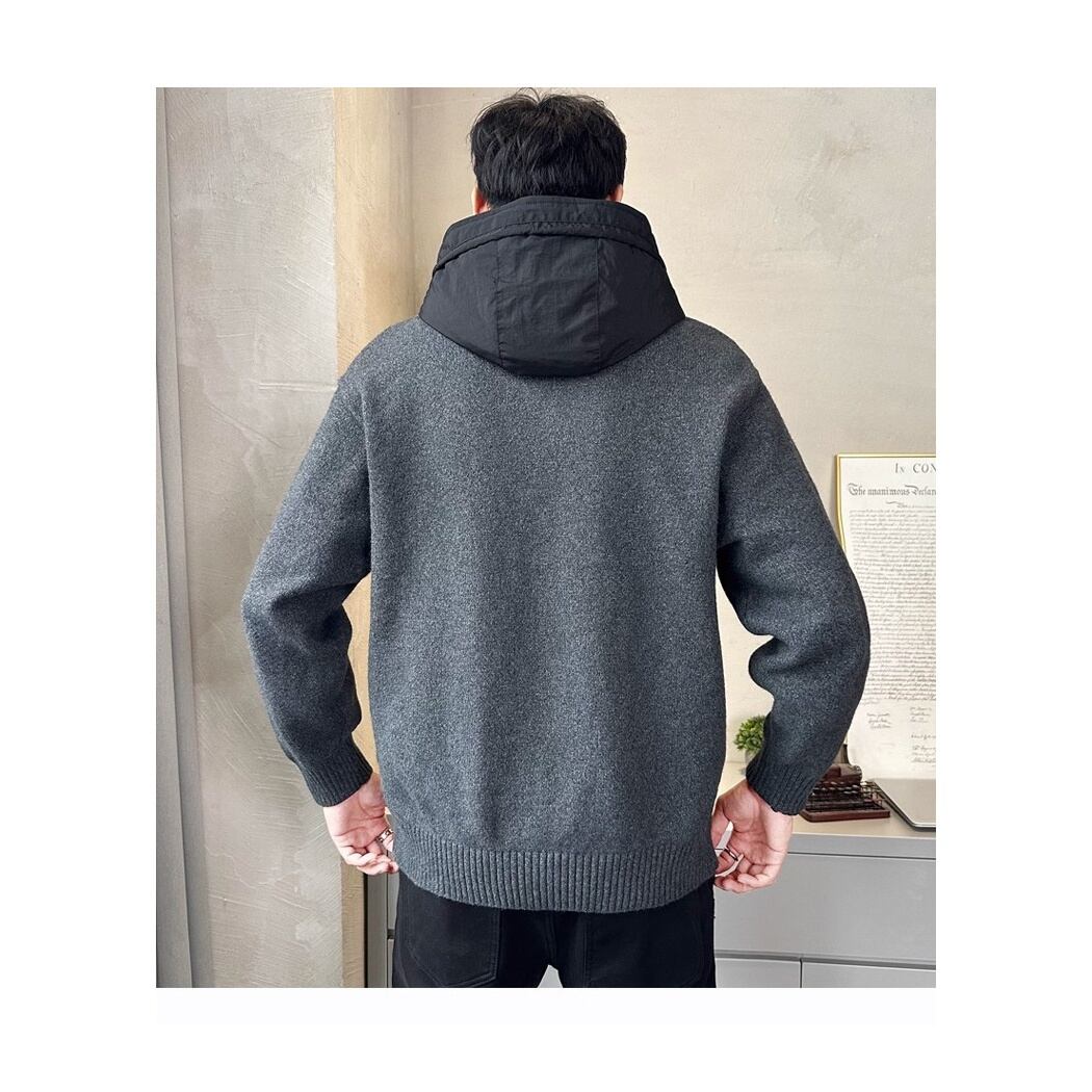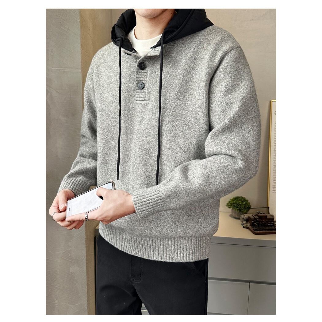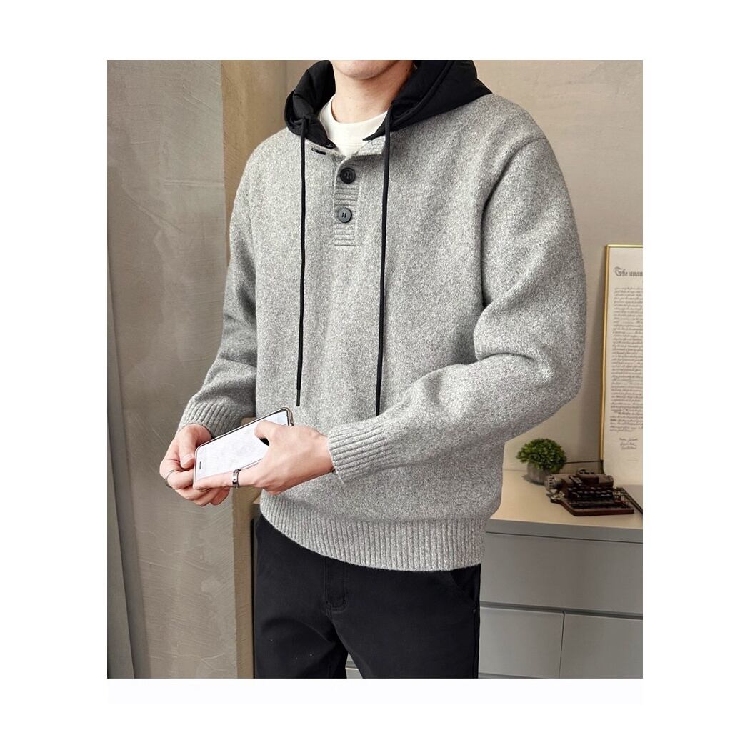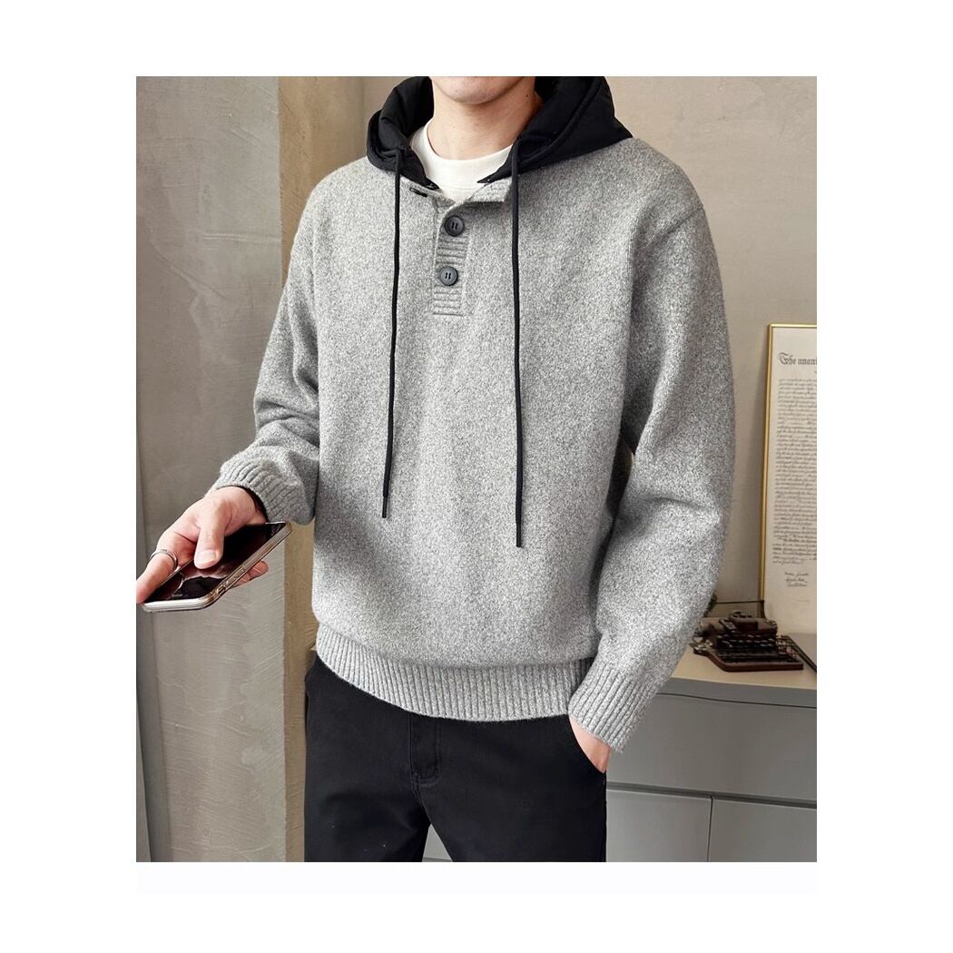 カジュアルながらも落ち着いた印象を与えるフーディーニット。