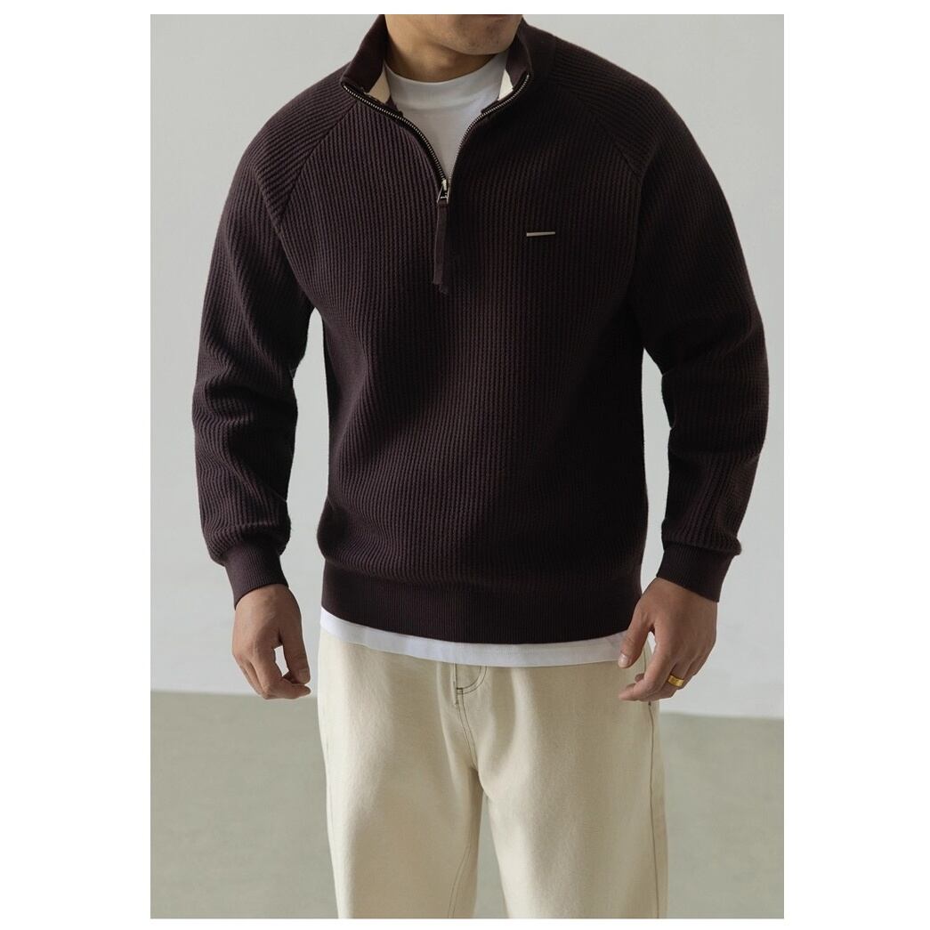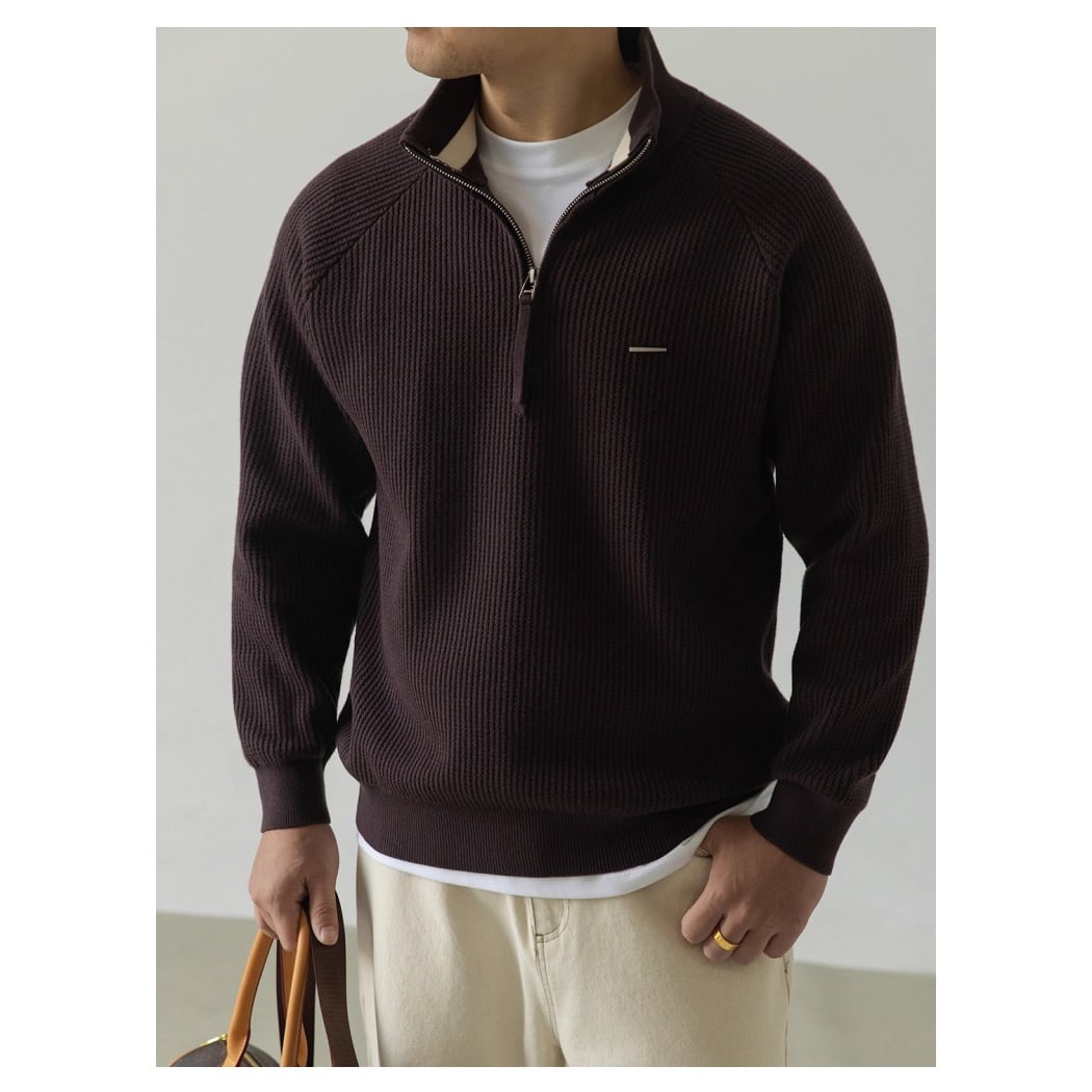 落ち着いた色味が魅力的なハーフジップセーター。