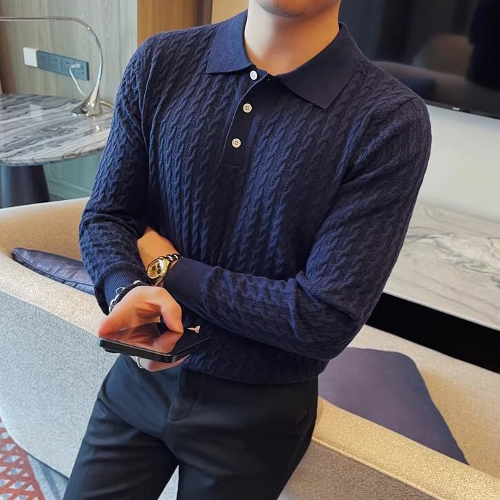 長袖 ニット オープンカラー ニットポロシャツ 3color KA1273