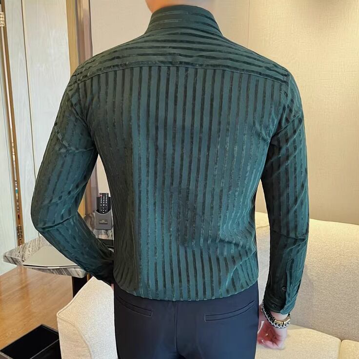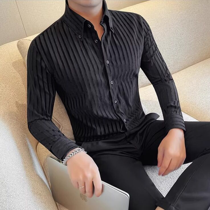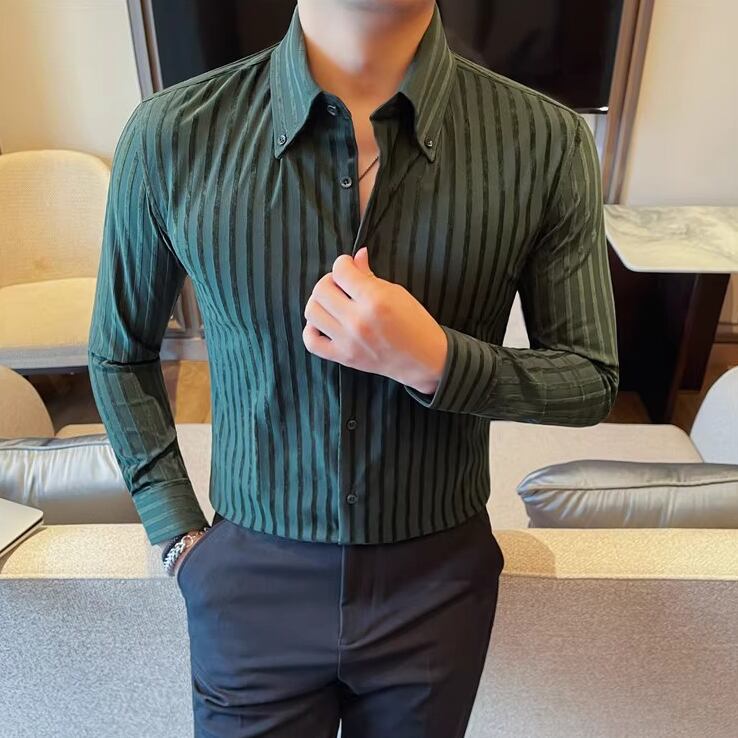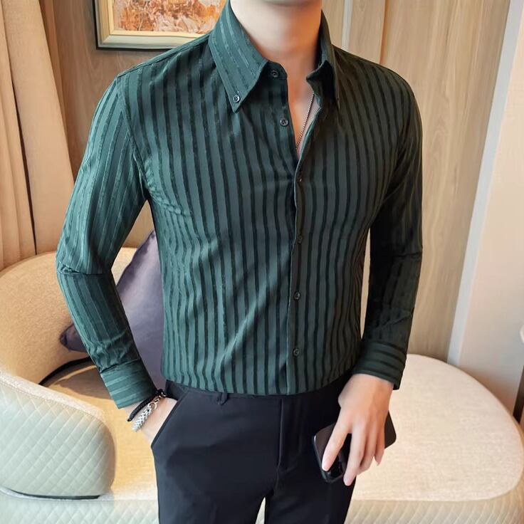 ストライプ柄 長袖 シャツカラー シャツ 3color KA1276