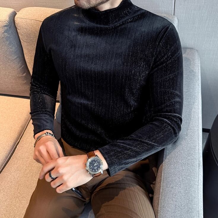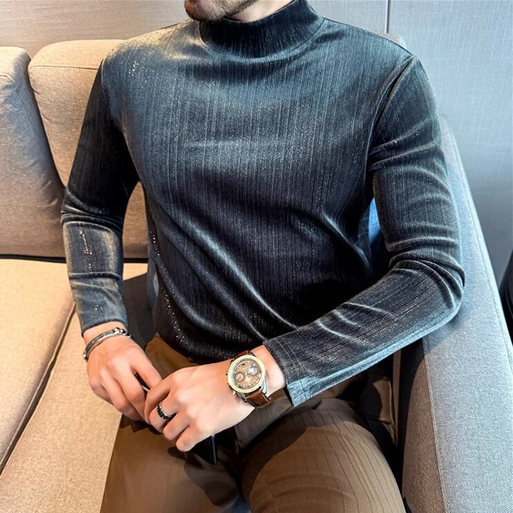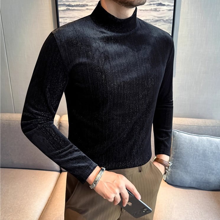ハイネックデザインが首元をすっきりと見せ、スマートな印象を与えます。