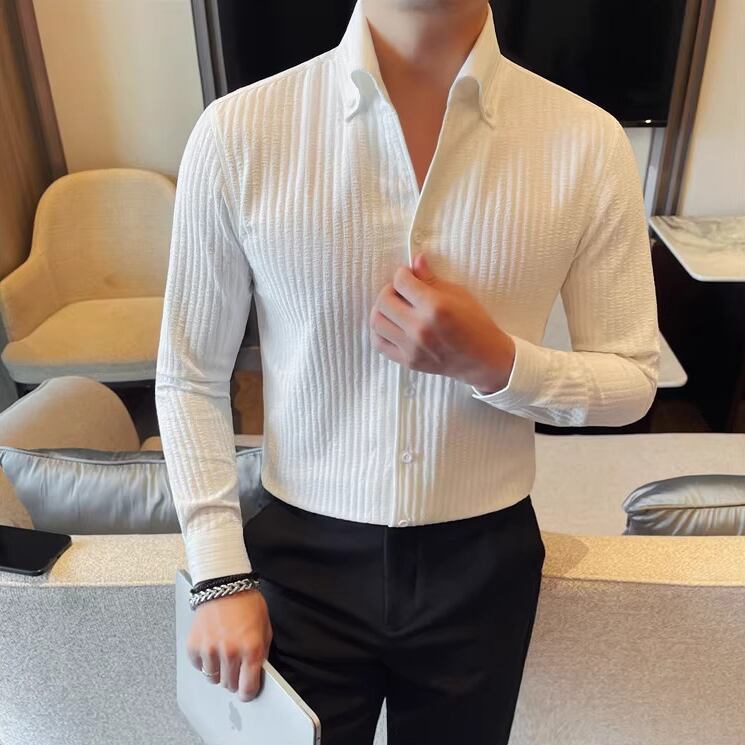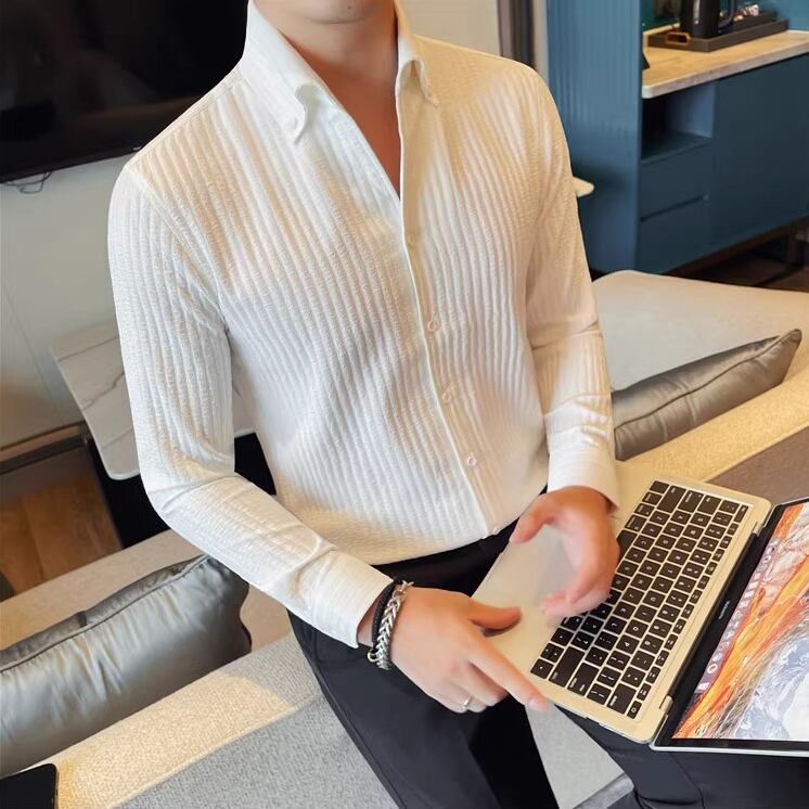 長袖 シャツカラー ストライプ ベーシック シャツ 2color KA1279