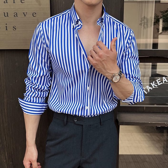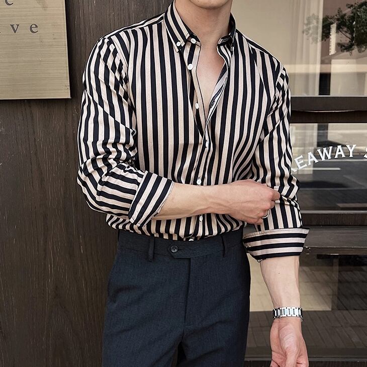 ストライプ 長袖 ボタンフロント シャツ 4color KA1282