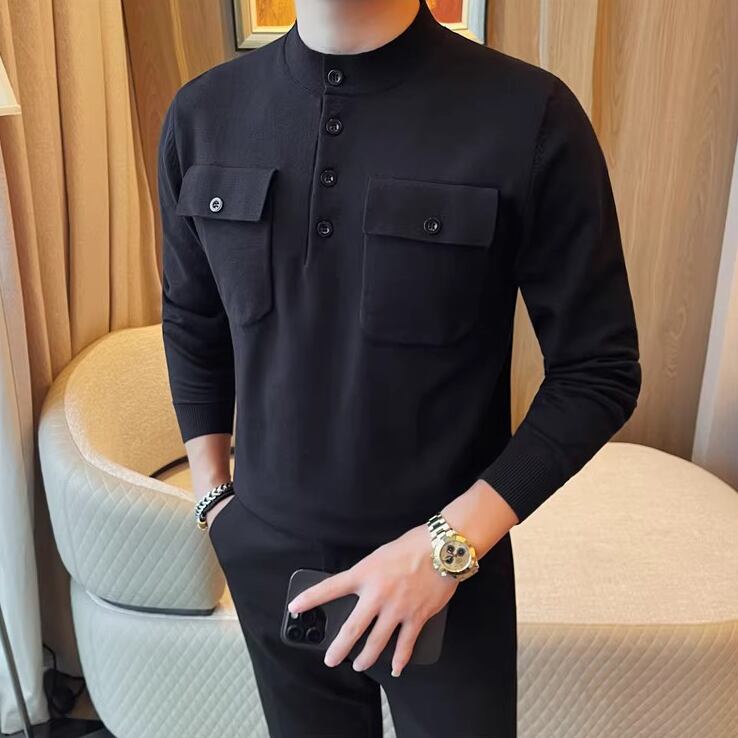 パッチポケット 長袖 ニットポロシャツ 3color KA1283