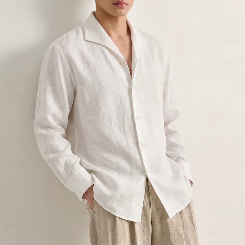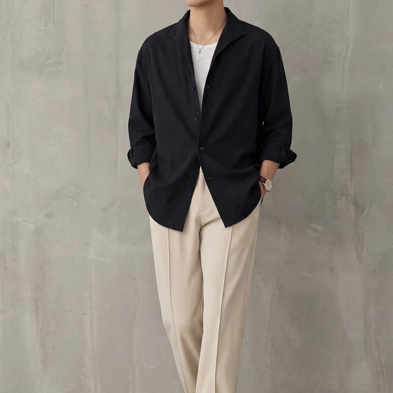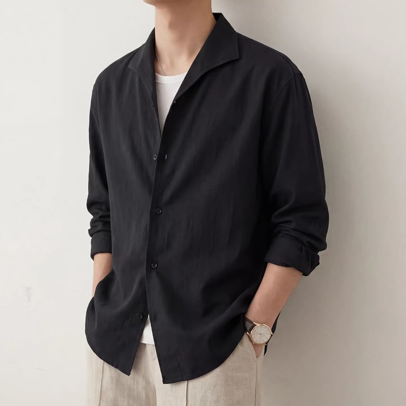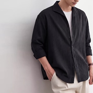 ボタンフロント ヒップ丈 オープンカラー 長袖 シャツ 2color KA1311