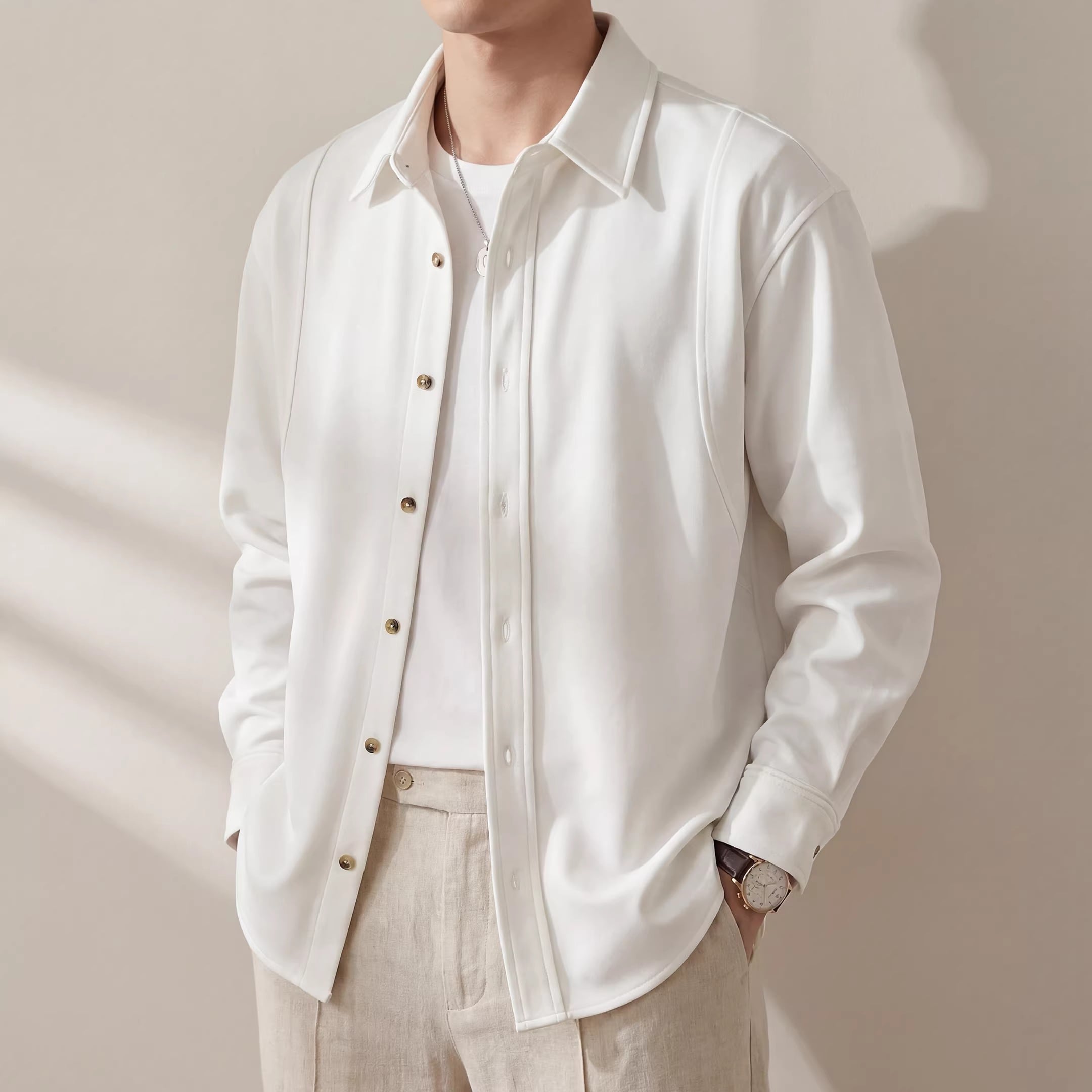 ボタンフロントのデザインが洗練された雰囲気を演出します。