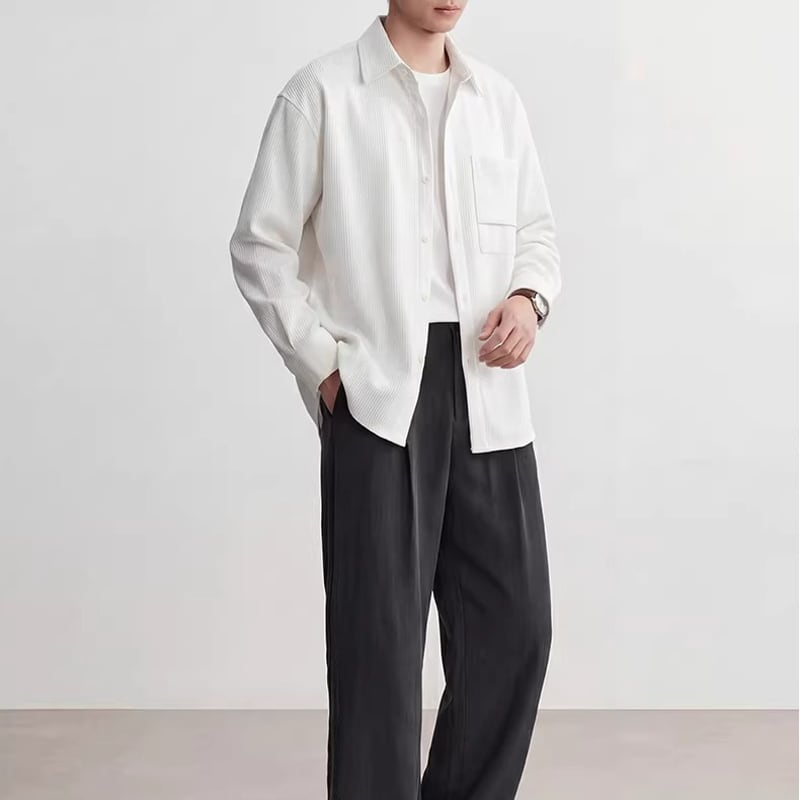 オープンカラー 長袖 ストライプ シャツ 3color KA1313
