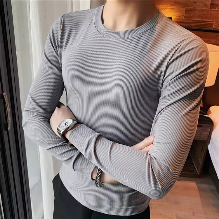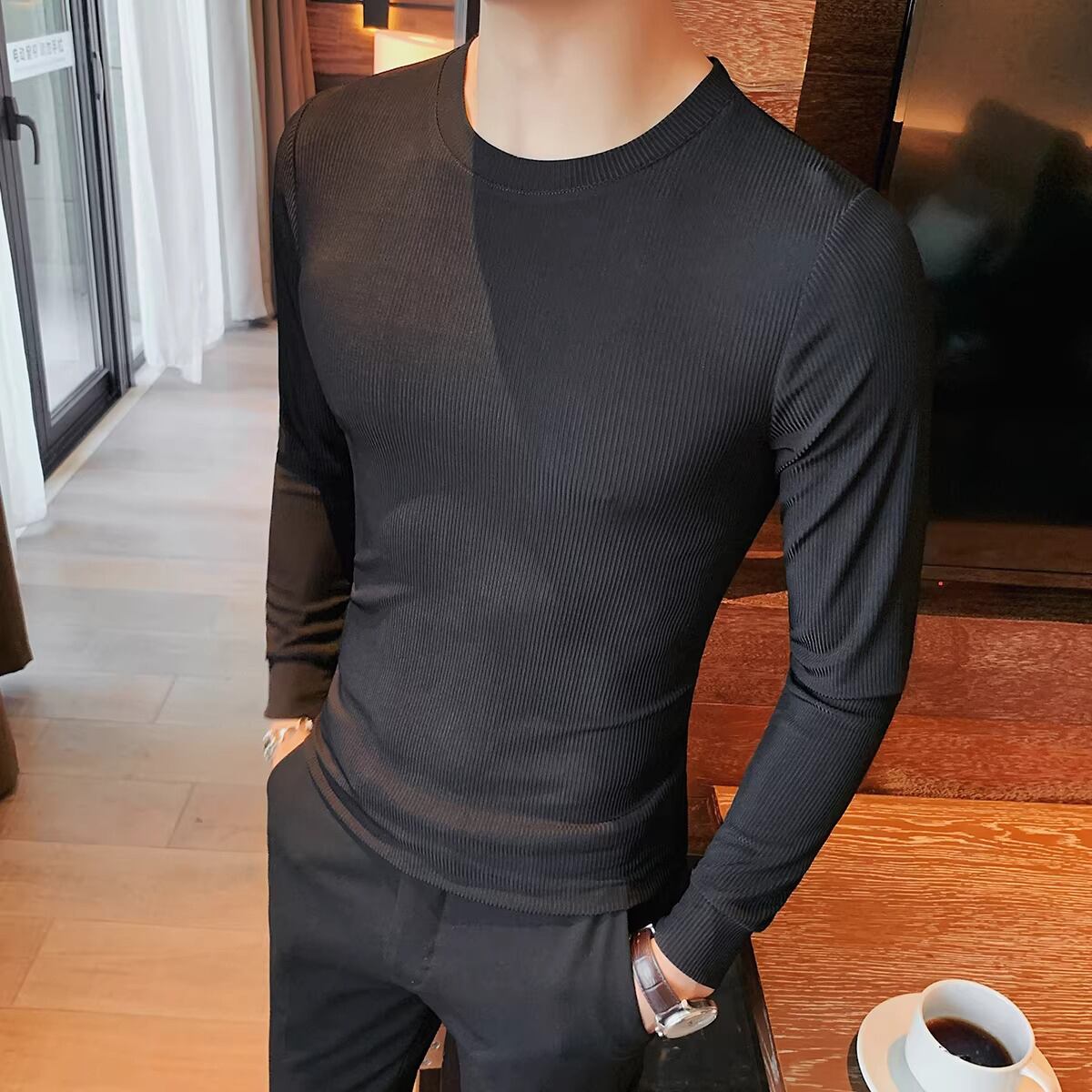 長袖 スリムフィット クルーネック Tシャツ 5color KA1319