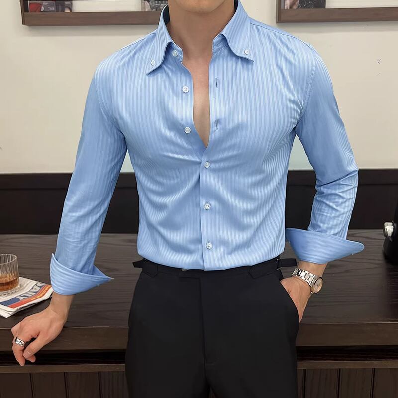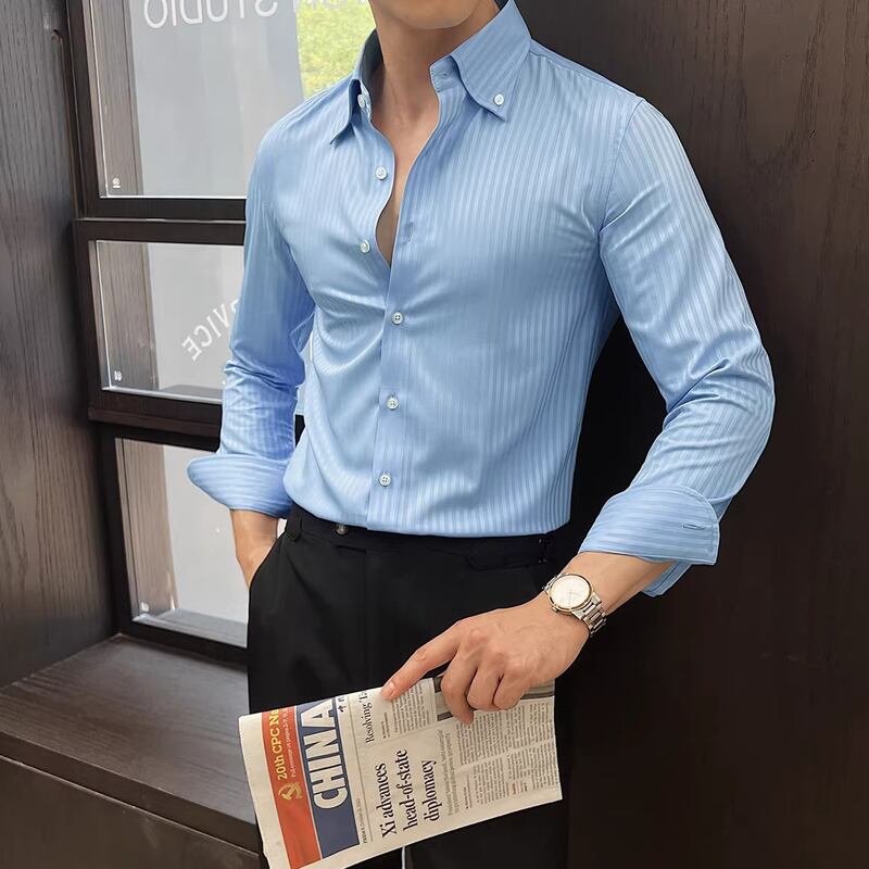 ボタンフロント 長袖 ストライプ柄 シャツ 3color KA1324