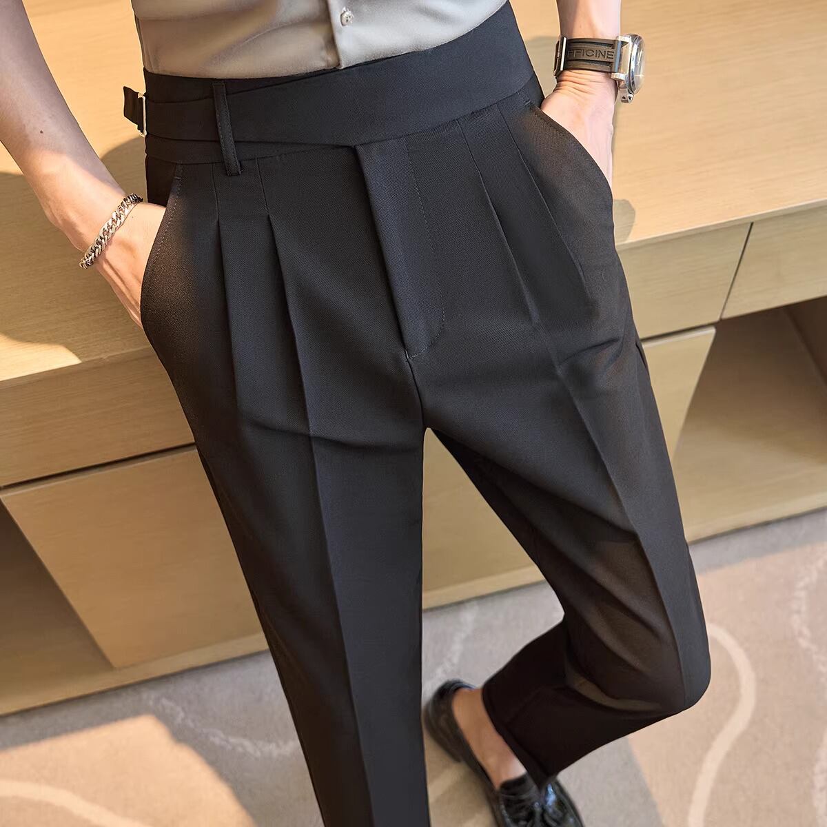 ベルト付き ハイウエスト ストレート メンズ パンツ 2color PA0414