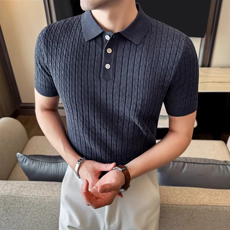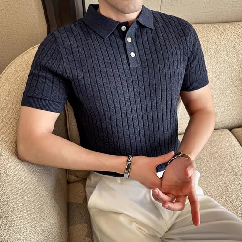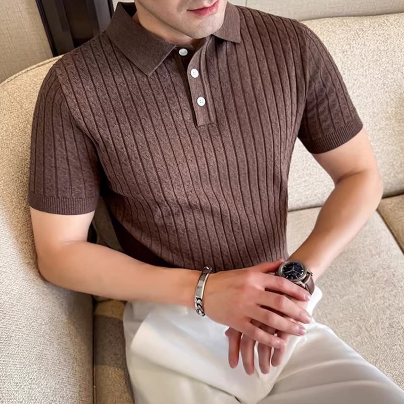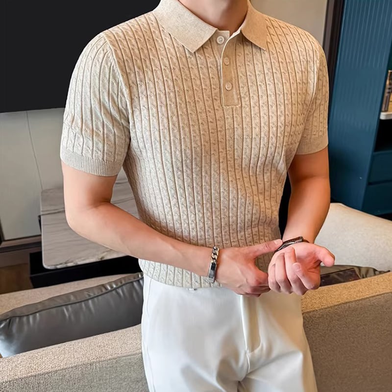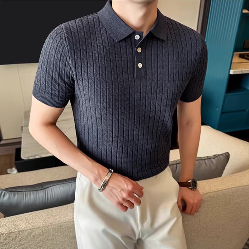 オープンカラー 半袖 リブ ニットポロシャツ 4color KA1331