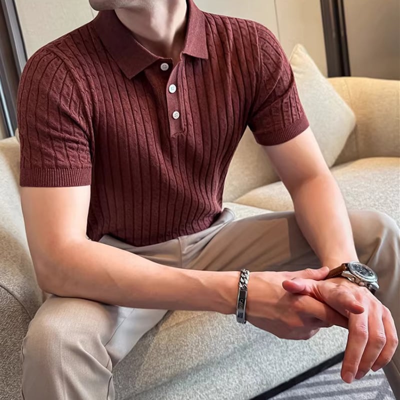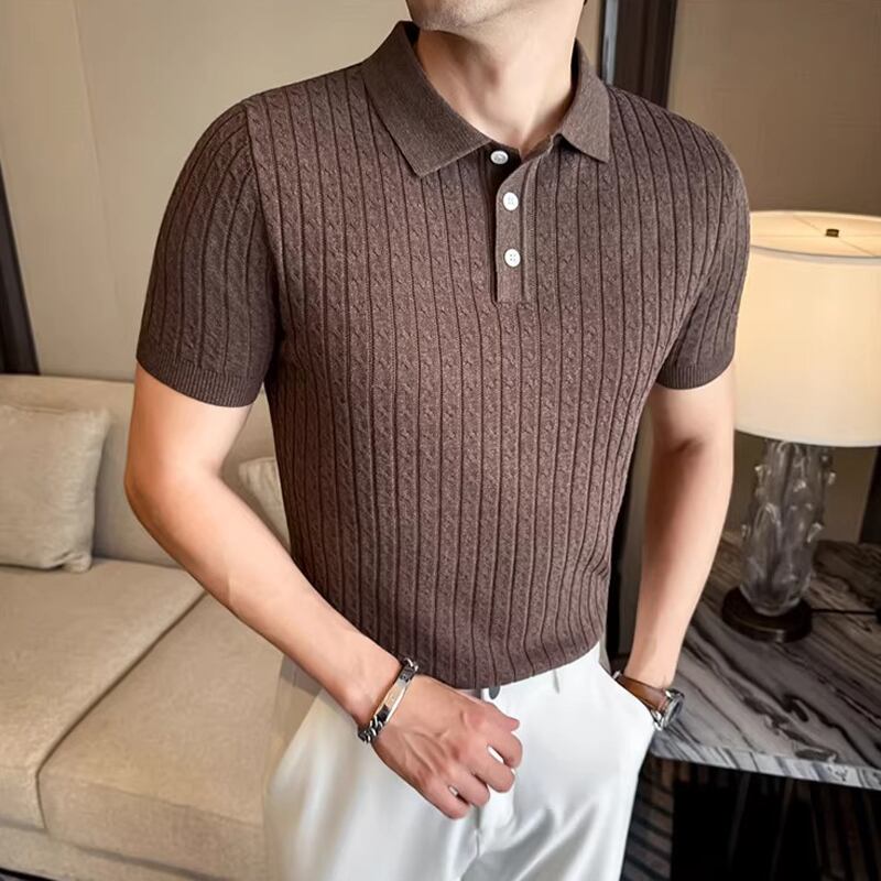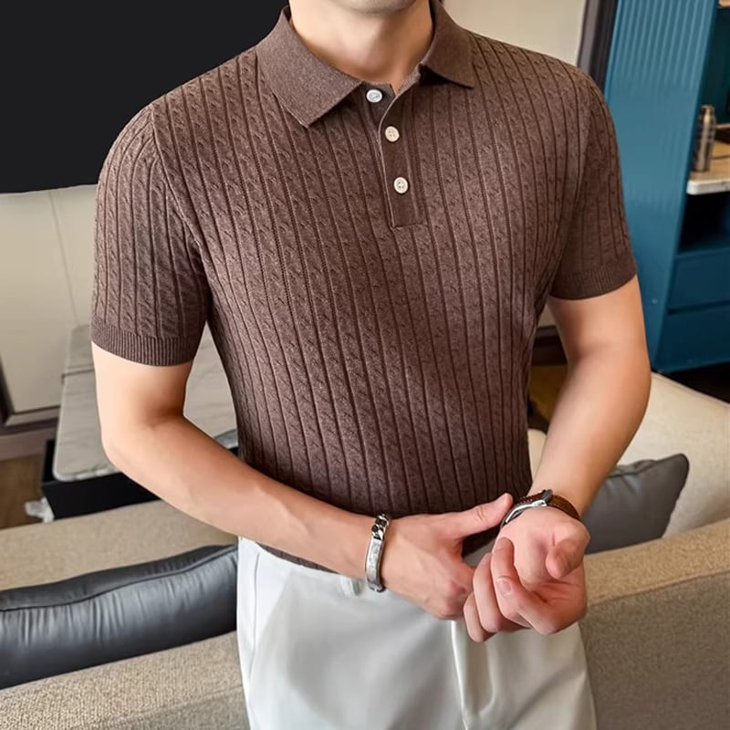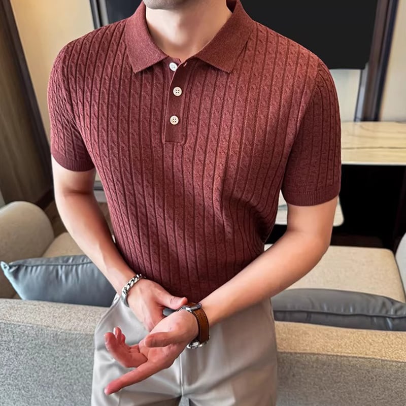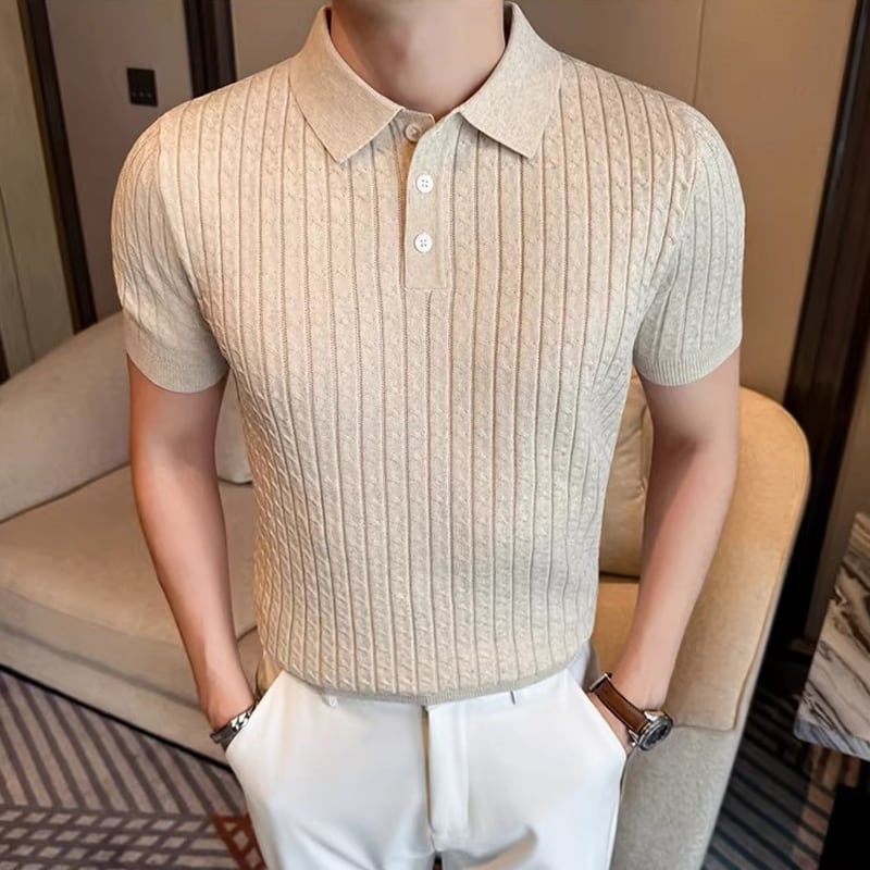 オープンカラー 半袖 リブ ニットポロシャツ 4color KA1331