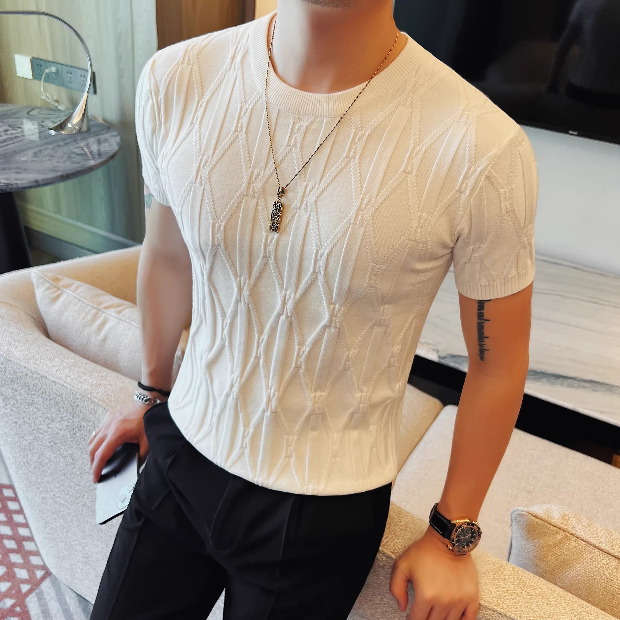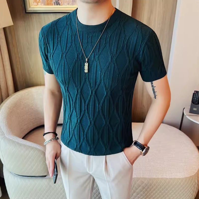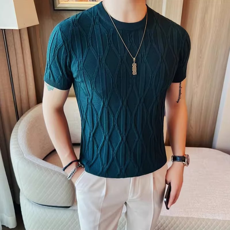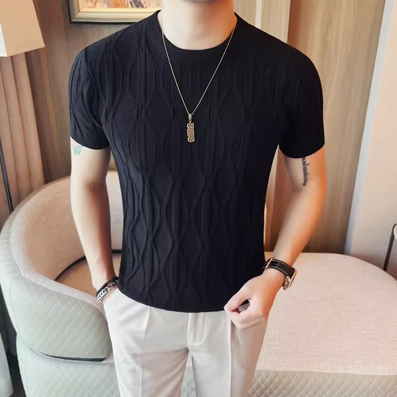 半袖 クルーネック スリム ニット 4color KA1333