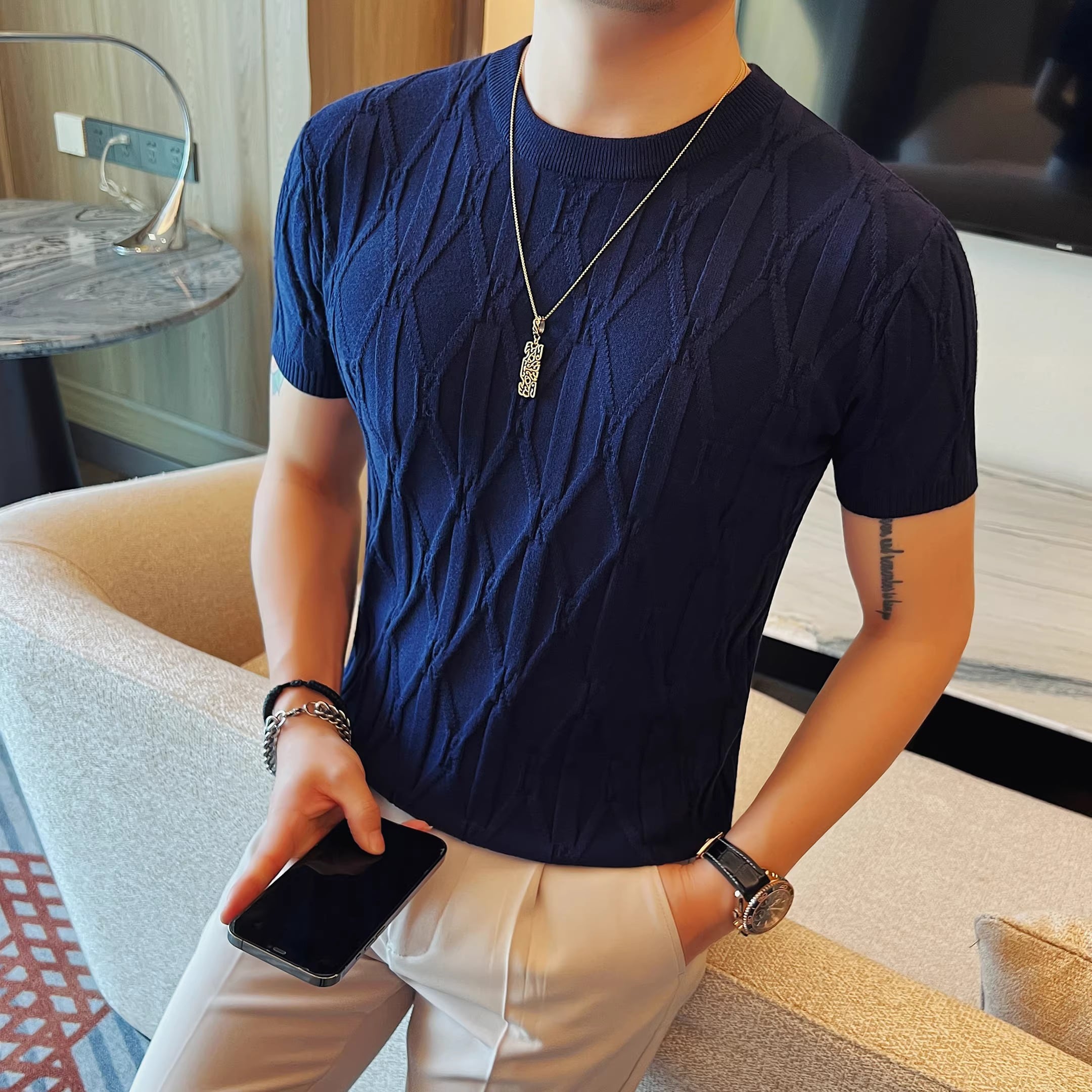 シンプルながらも洗練されたデザインで、カジュアルからフォーマルまで幅広く対応します。