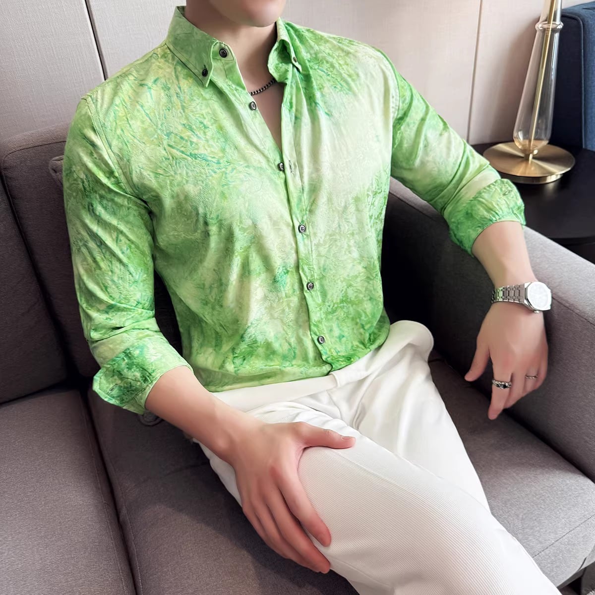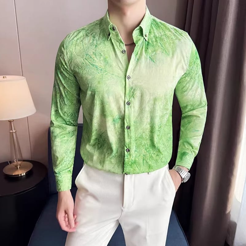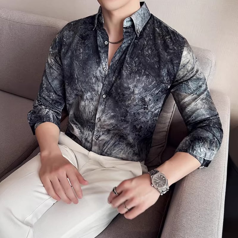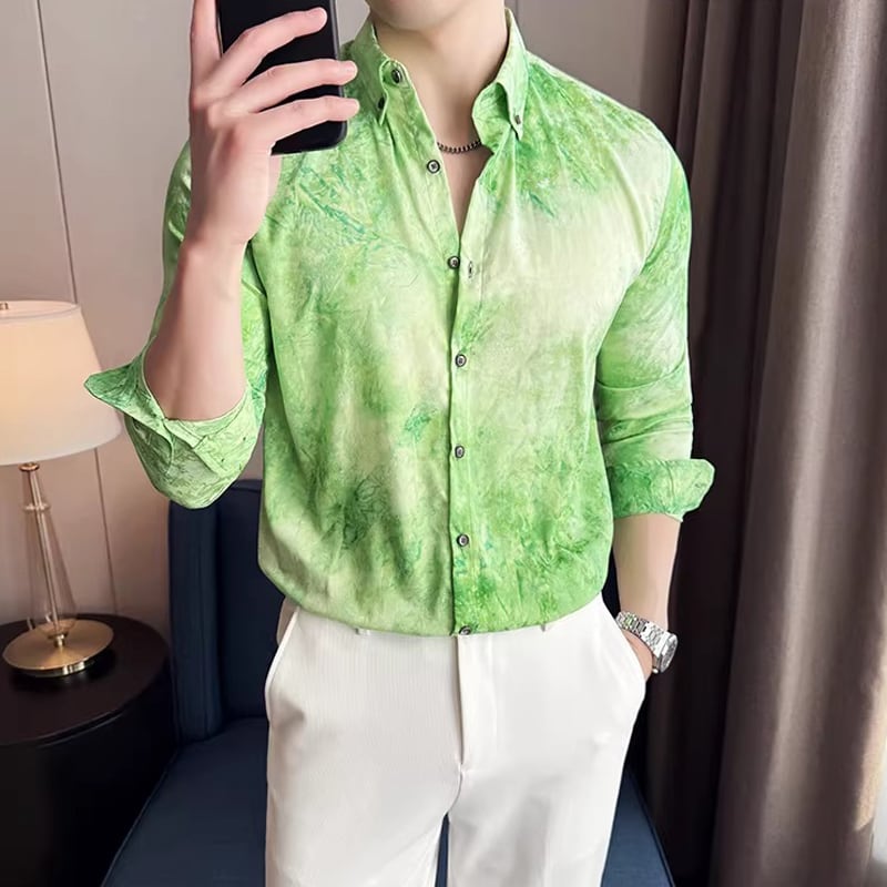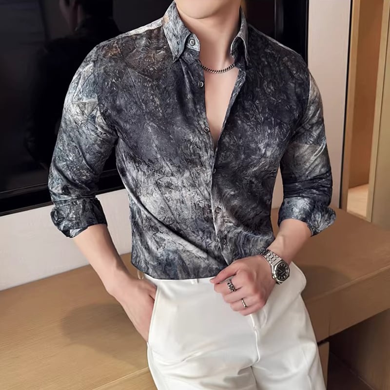 総柄 レギュラー丈 シャツカラー 長袖シャツ 3color KA1336