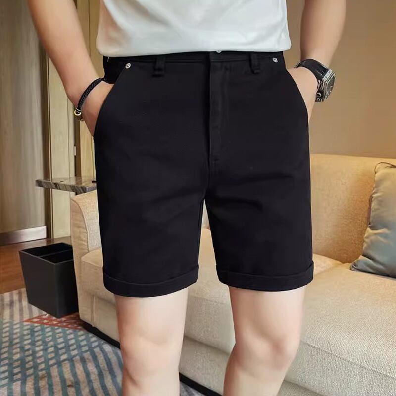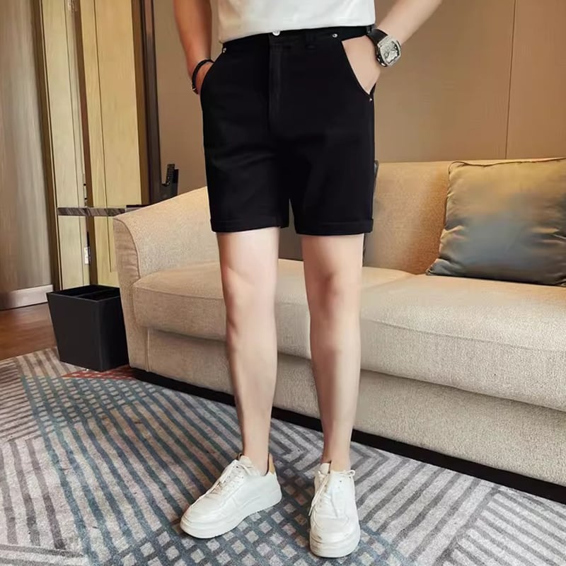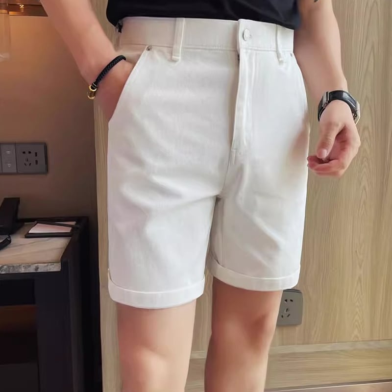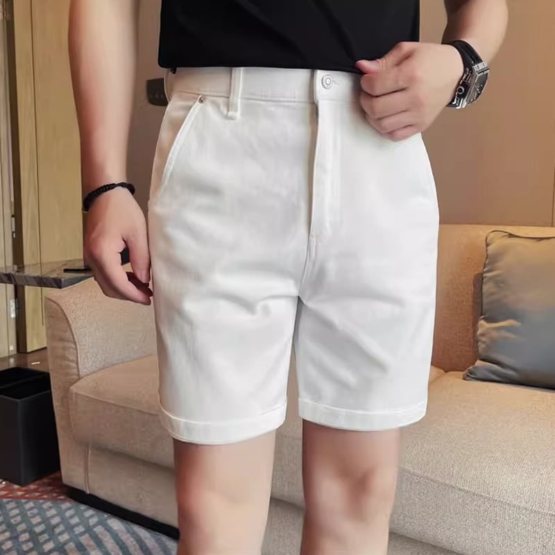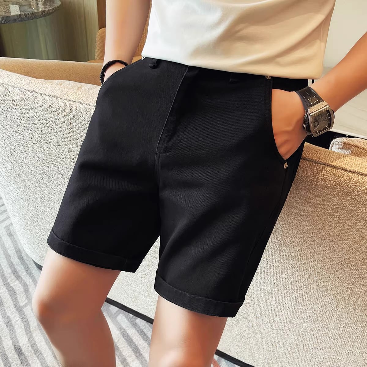 ハーフ丈 無地 コットンデニム ショートパンツ 2color PA0417