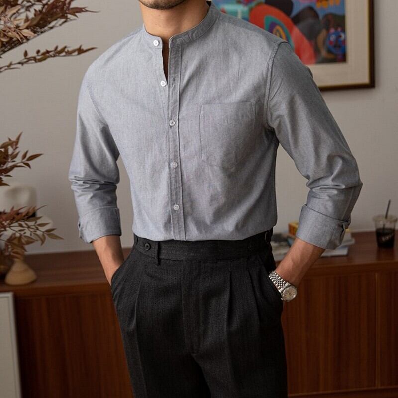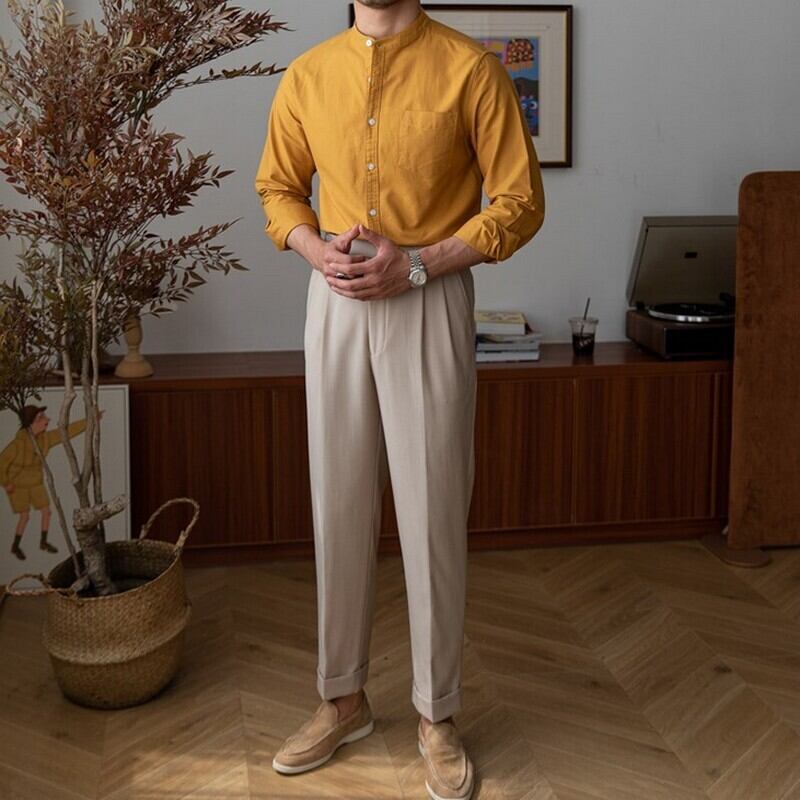 ノーカラー ボタン スリムシャツ 7color KA0007